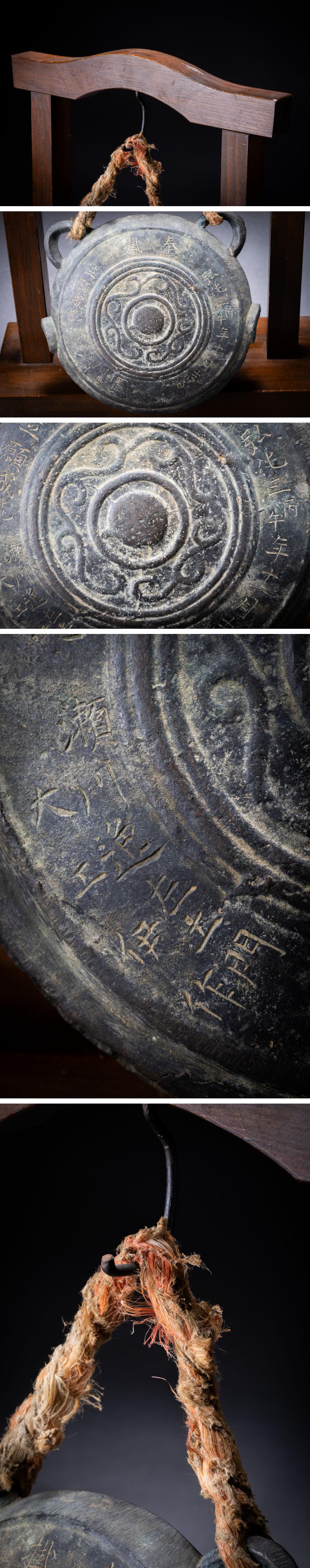 【華】某有名収集家買取品 江戸時代物 ブロンズ 青銅 銅鑼置物 古美術 骨董品A25090257-PQ
