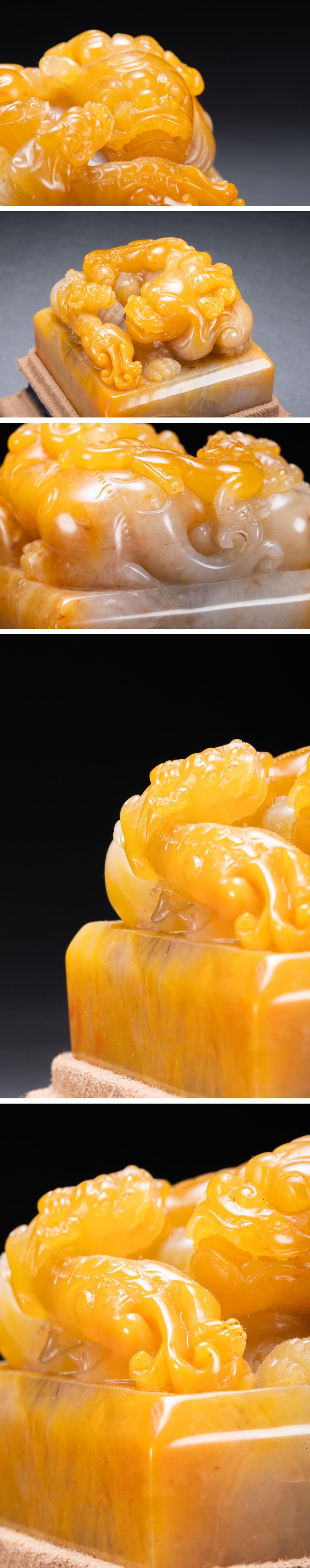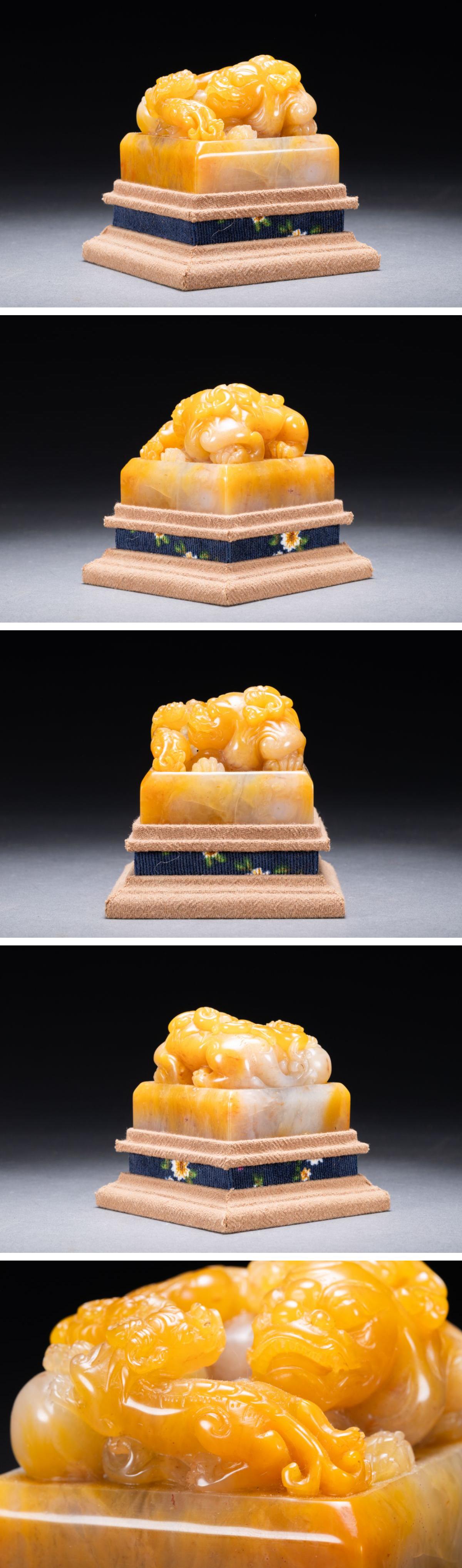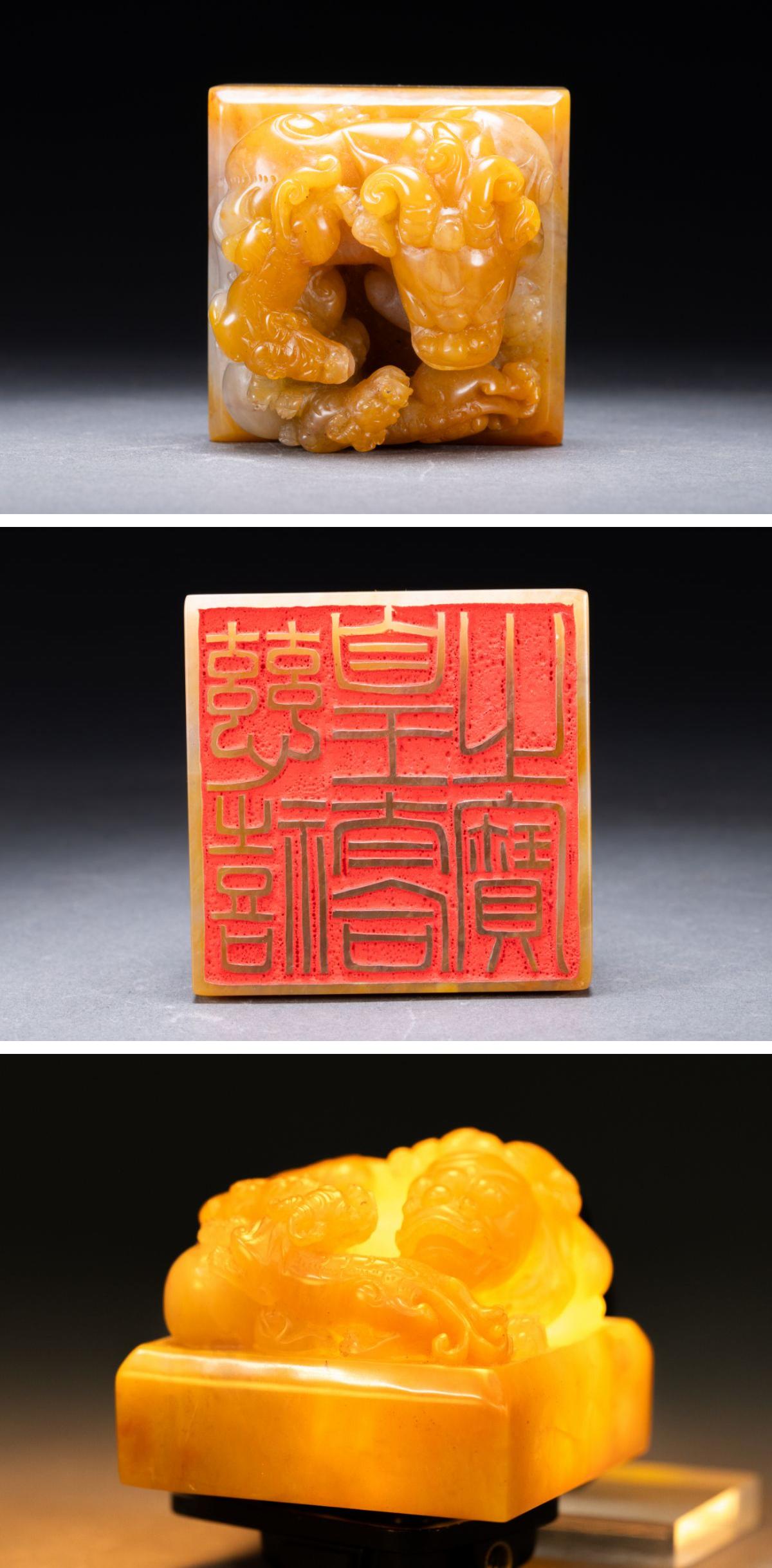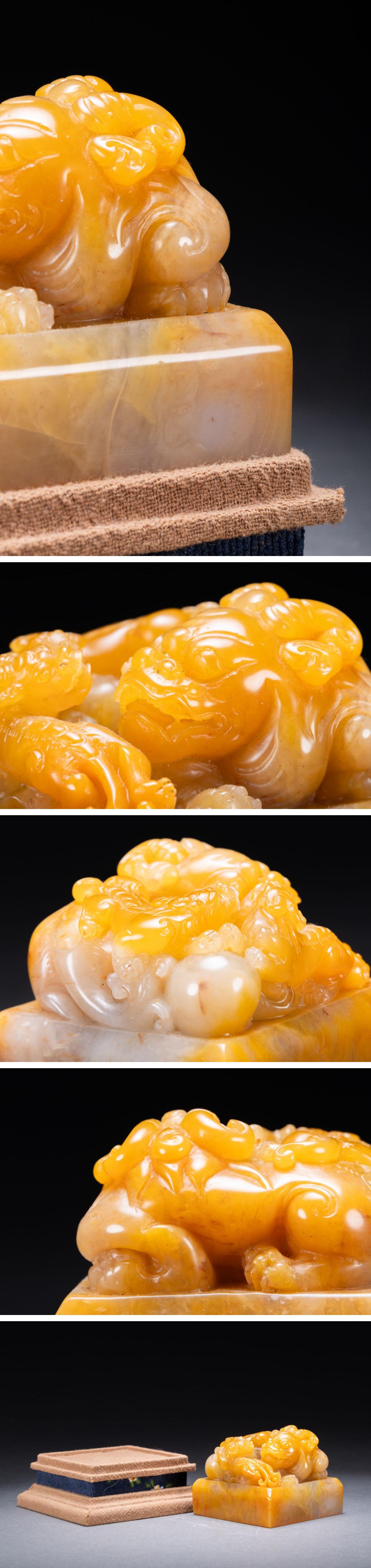 【清】関西某オークション購入 中国伝来 清時代物 寿山田黄石 太獅少獅文御印 材質保証当時物 時代コレクションZ-80S5
