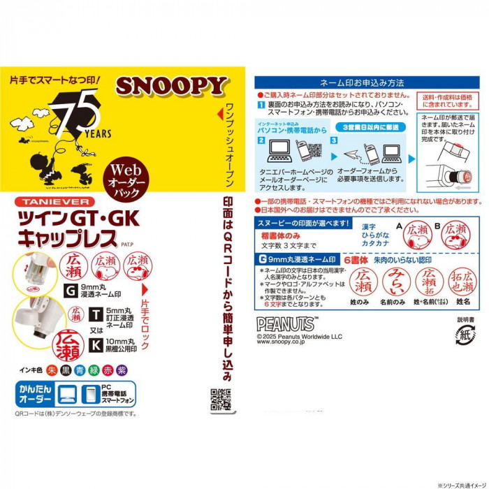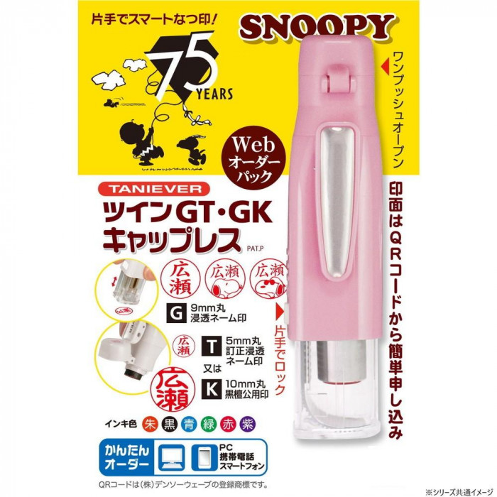 | 両側共にキャップレスで簡単、便利に捺印出来て、ロック機構も備えています。印面はQRコードから簡単にお申込みが出来ます。 ※こちらの商品はウェブのオーダー商品です。 ※諸般の事情により、品名、仕様などを変更する場合がありますので、ご了承下さい。 |