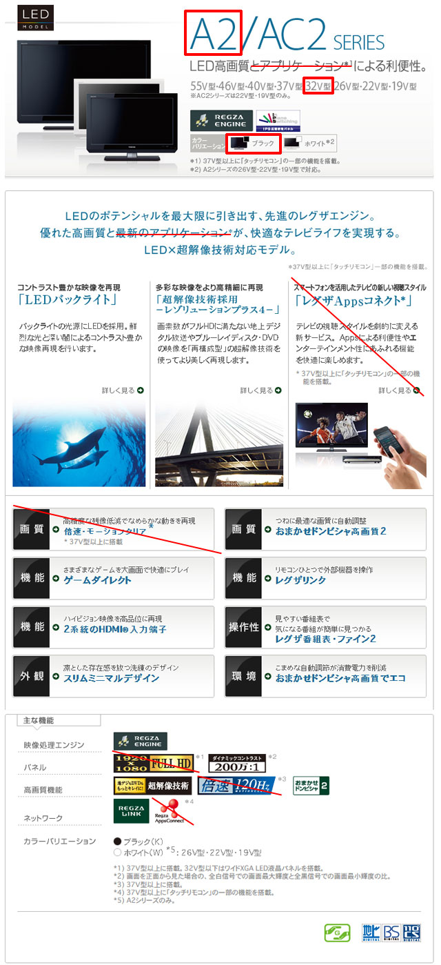 | メーカー・型式 | 東芝 / レグザ 32A2 | |