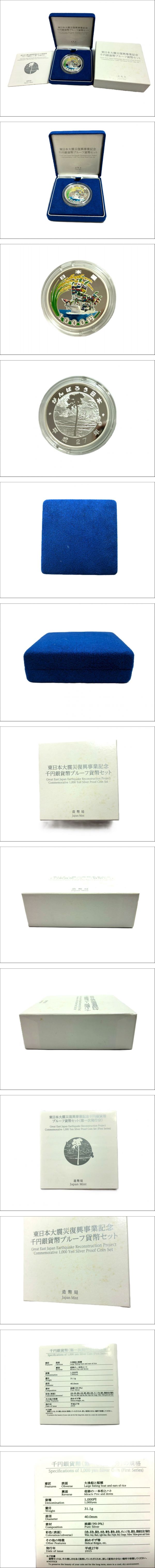 | 商品説明 | 下記注意事項を熟読、同意の上 御入札下さい。 現状品での出品になりますので 落札後の返品返金は お断りさせて頂いております。 神経質な方はご入札を御遠慮下さい。 ご不明な点がございましたら 落札前に質問にてご連絡をお願い致します。 写真と説明にて全てをご理解 ご判断して頂いた上でご入札下さい。 【詳細】 東日本大震災復興事業記念 千円銀貨幣プルーフ貨幣セット