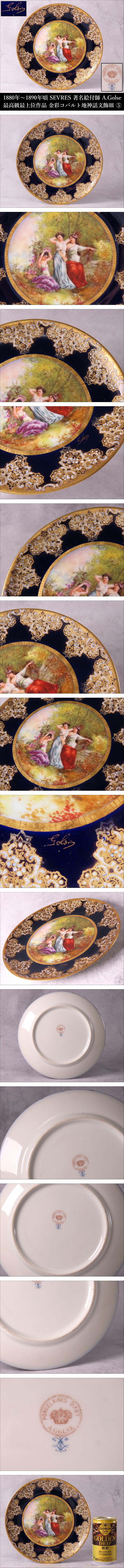 【ONE'S】1890年頃 SEVRES セーブル磁器 著名絵付師 A.Golse アンドレ・ゴルス 最高級作品 金彩コバルト地 神話文 飾皿 ⑤ 西洋美術 | |||