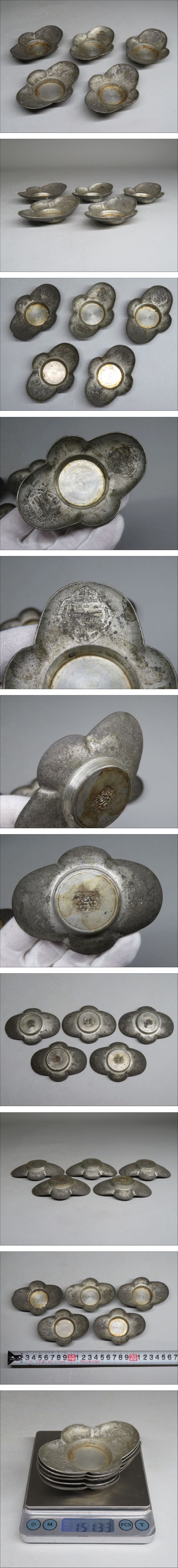 | (5-2) 煎茶道具◆ 清時代【黄忠老店】錫製 木瓜形茶托 五客 //紫砂壷 茶壷 泡瓶 茶器 茶道具寶瓶宝瓶 | ||