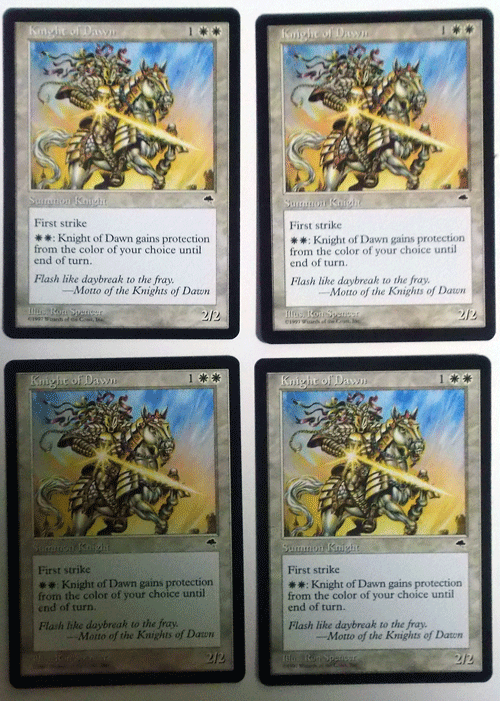 MTG英語/4枚セット/Knight of Dawn(暁の騎士)/テンペスト/アンコモンです。中古品扱いですので、神経質な方、美品をお求めの方は入札をご遠慮ください。