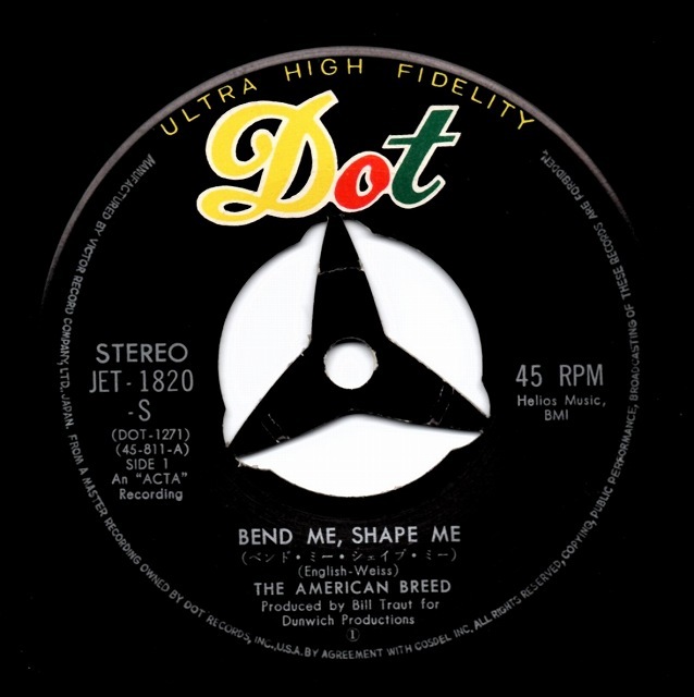 ■【EP盤】ジ・アメリカン・ブリード/ベンド・ミー・シェイプ・ミー、マイ・ガール JET-1820 |