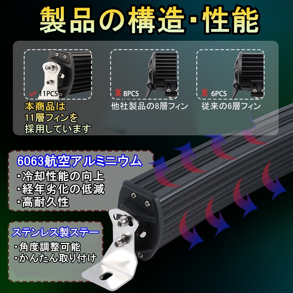 | 商品内容 LEDライトバー(53cm) ストレートタイプ 特徴 発光色:ホワイト 対応電圧:12V/24V 消費電力:390W 色温度:6,500K 防水・防塵性能:IP68 (防水/防塵ともに最高性能) 動作温度:-40℃~85℃ 動作寿命:50,000時間以上 全体サイズ:590mm 照明部サイズ:530mm 付属品:固定用ステー/配線 適合確認 タイトルの車種情報をご確認ください。 ※タイトルにある車種以外でも12V/24V車であればご使用可能です。 ※タイトル車種は弊社で12V及び24Vであることを確認した車種になります。 |