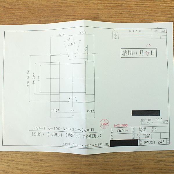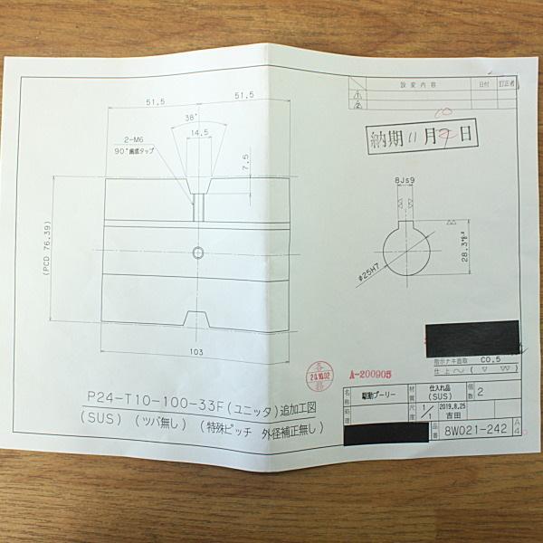 | 管理番号:1100000075520 メーカー:ゲイツ・ユニッタ 型番:P24-T10-100-33F/SUS 規格・仕様: ・外径:φ76.39mm ・全幅:75mm ・刃幅:約30mm ・その他の詳細は図面にて。 商品は写真に写っているもので全てです。(※背景などにある無関係の物は含まず) 他に付属品はありません。 ご質問はお気軽にどうぞ。分かる範囲でお答えします!! ※上記は型番などから調べたデータを抜粋したものです。 |