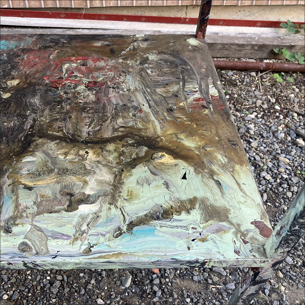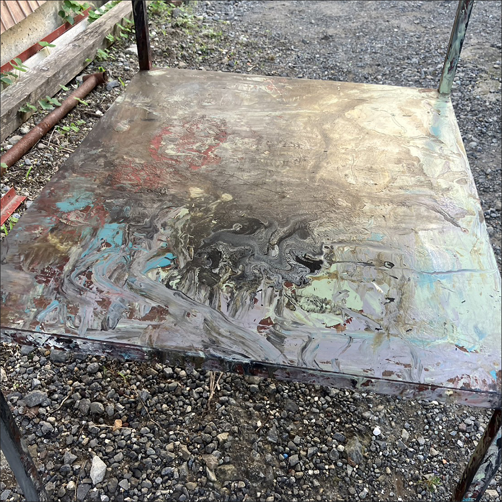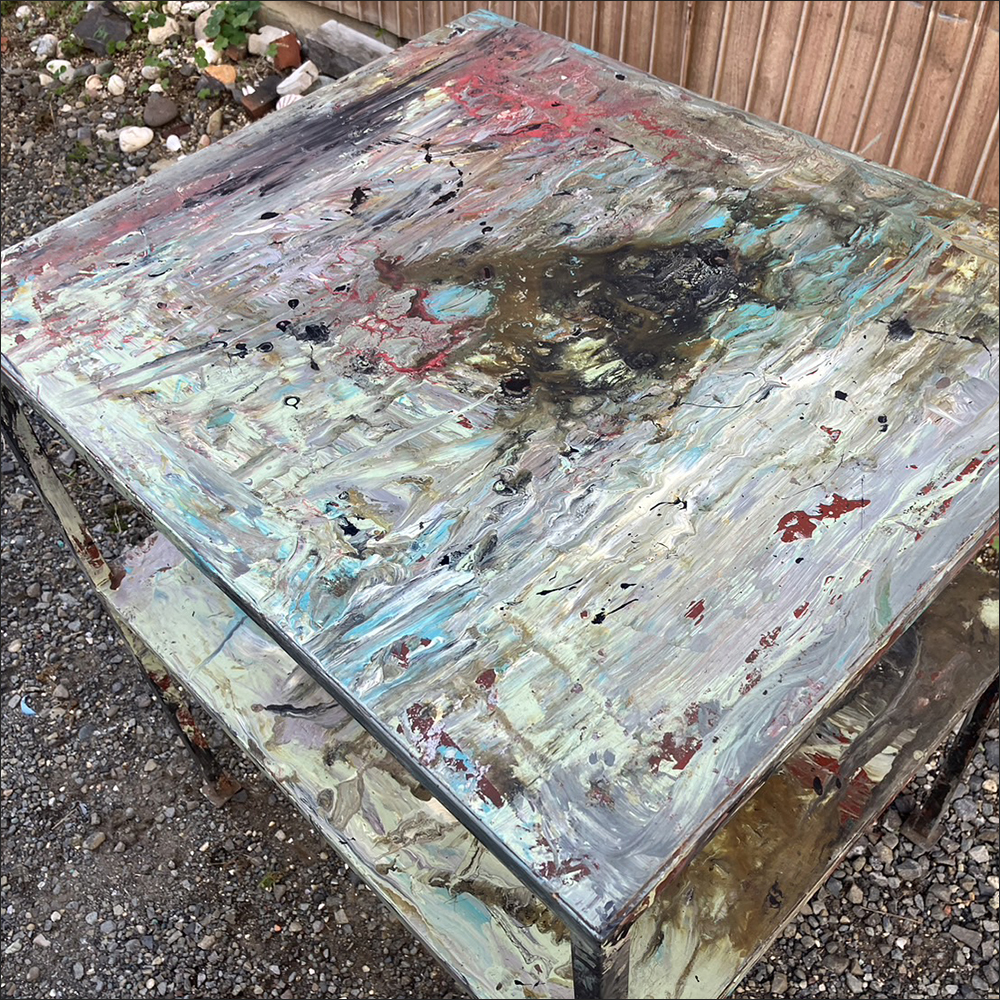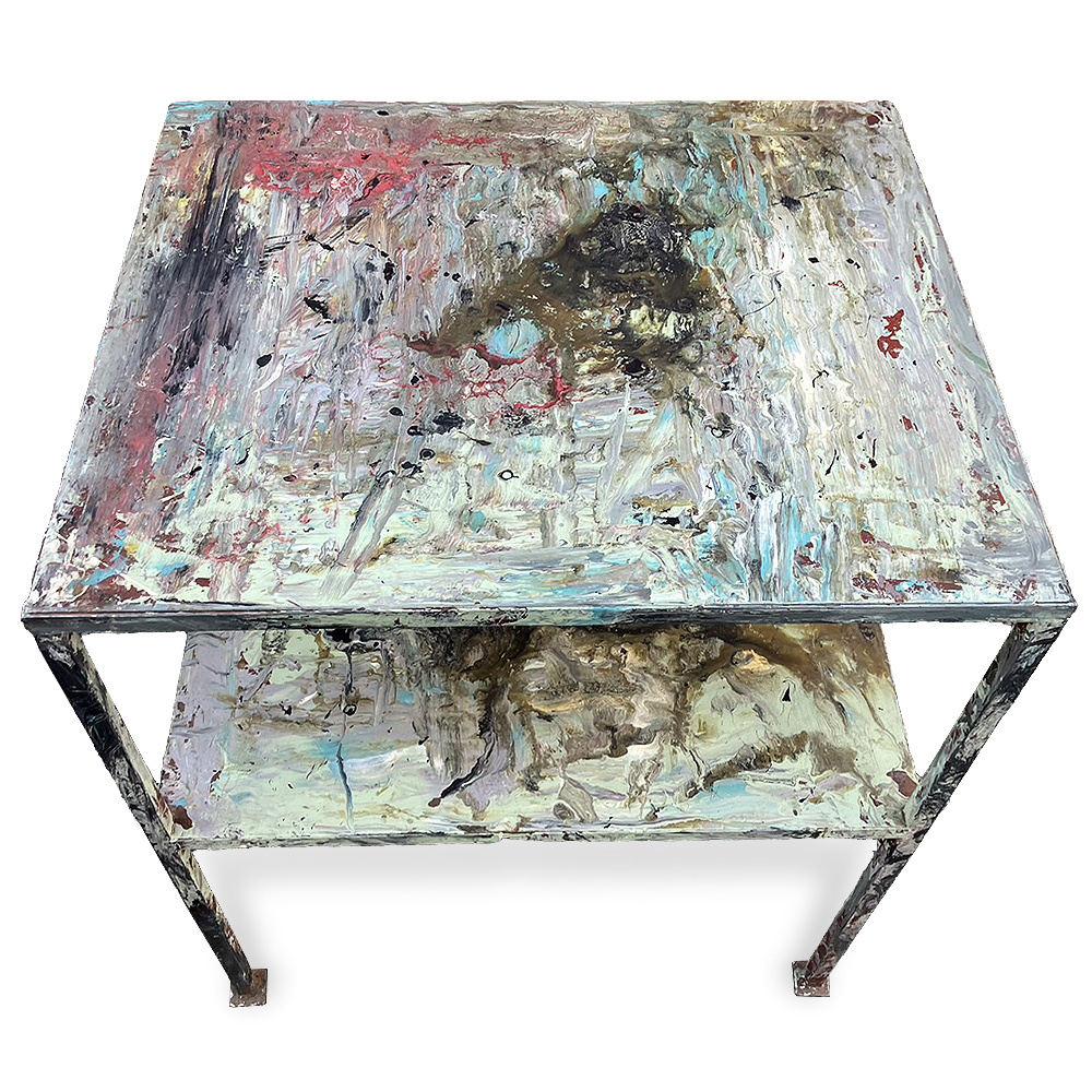 幾重にも絵具が重ねられた絵描きが使用していたワークテーブルです。