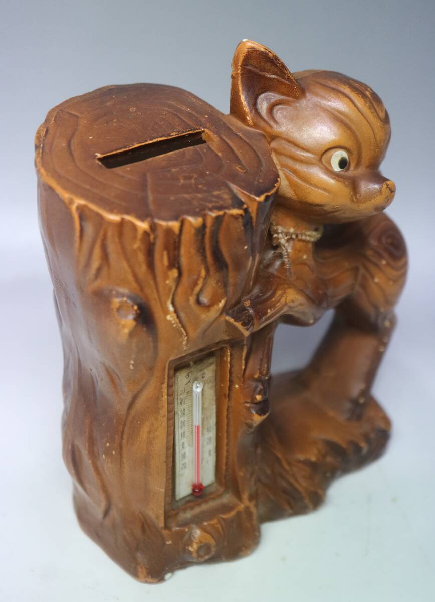 昭和レトロ 当時物 レトロ貯金箱 シカ バンビ 温度計付き置物 インテリア アンティーク コレクションです。