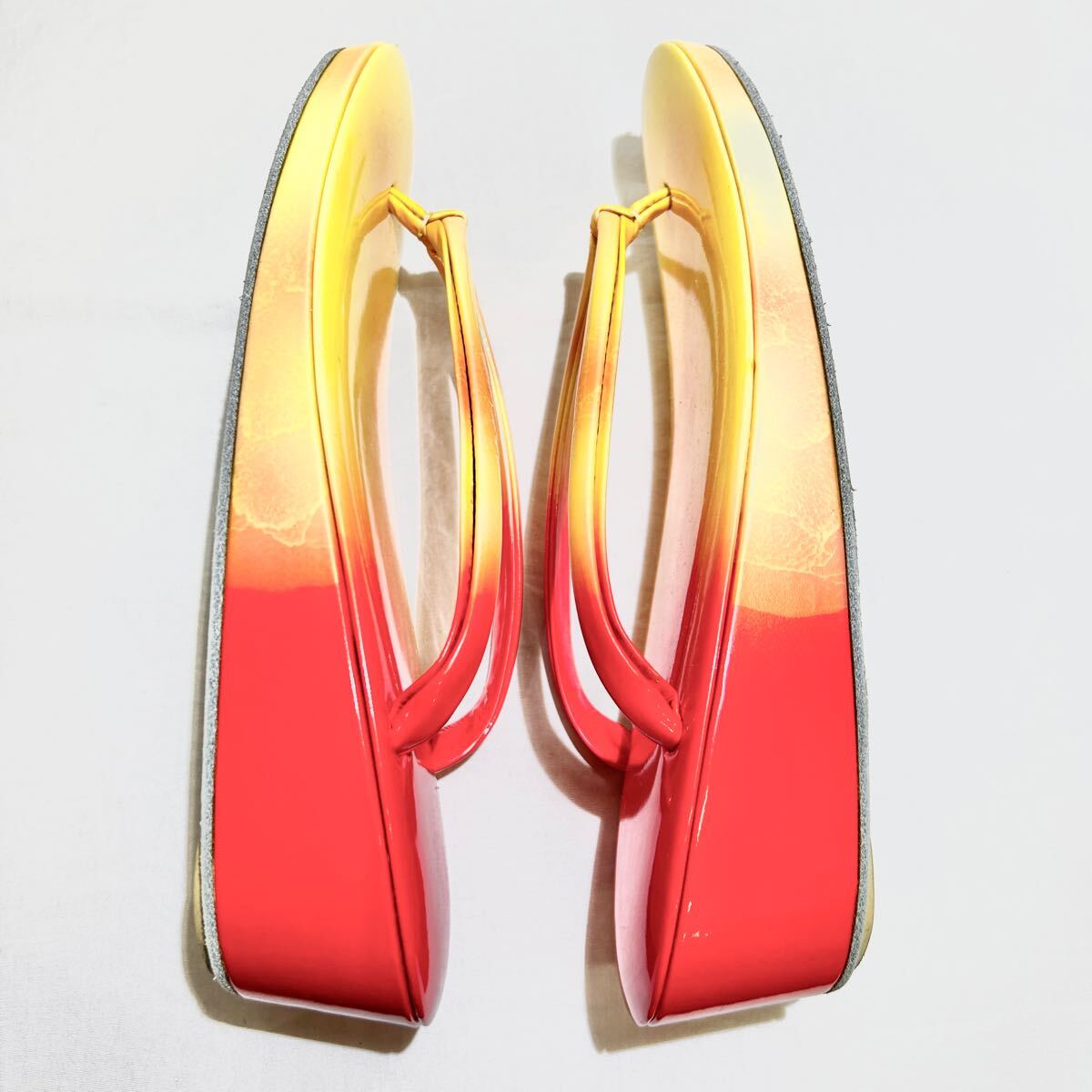 ★美品★23.5cm★ 大阪心斎橋 てんぐ 草履 着物 ぞうり きもの 和装小物 履物 女性用 淡黄×朱色 グラデーション (11176C