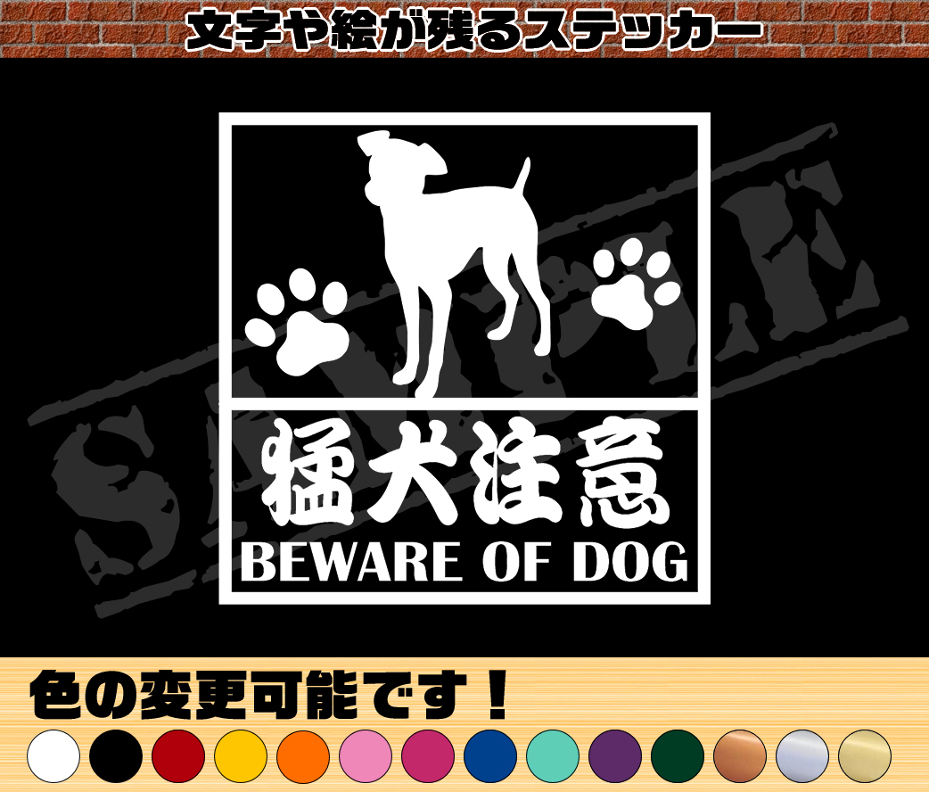 オリジナルデザインですので人と被らない商品をお探しの方にお勧めです! (転写シート・貼り付け簡易説明書付) ※『BEWARE OF DOG』の部分をわんちゃんのお名前に変更も可能です。(ローマ字に限る) サイズ(ステッカー実寸) 縦:9cm 横:9cm 色:ホワイト ※色はブラック・レッド・イエロー・オレンジ・ピンク・シクラメン・ブルー・ミント・パープル・ダークグリーン・ブロンズ・シルバー・ゴールド・艶消しシルバー・艶消しゴールド・艶消しブラック・艶消しホワイトにも変更可能です。 ※艶消しシルバーと艶消しゴールドは+100円となりますので購入前にご連絡ください。購入後の変更はできませんのでご注意ください。 耐候年数は4年~5年の屋外・屋内共に使用に適したステッカー(防水)を使用し、ガラスや滑らかな表面などに貼るのに適しています。 7cm~9cm(通常サイズ)1枚:430円 10cm~12cm(小サイズ)1枚:550円 13cm~14cm(中サイズ)1枚:600円 15cm~18cm(大サイズ)1枚:800円 上記サイズにも変更可能ですのでご希望の方はコメントでお知らせください。 | ||||