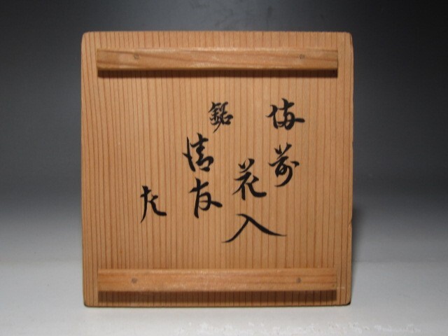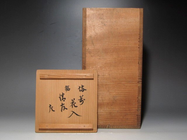 古備前花入「清友」です。 表千家十二代惺斎の花押があります。 時代を感じる素晴らしい逸品です。 サイズ 直径10cm/高さ20cm(多少の誤差はお許しください) 状態 一見して疵やヒビ・直しは見られません。 骨董品という事をご勘案頂き、時代経過のスレや、小さな傷がある場合があるかもしれませんのでご承知置きください。 | |||