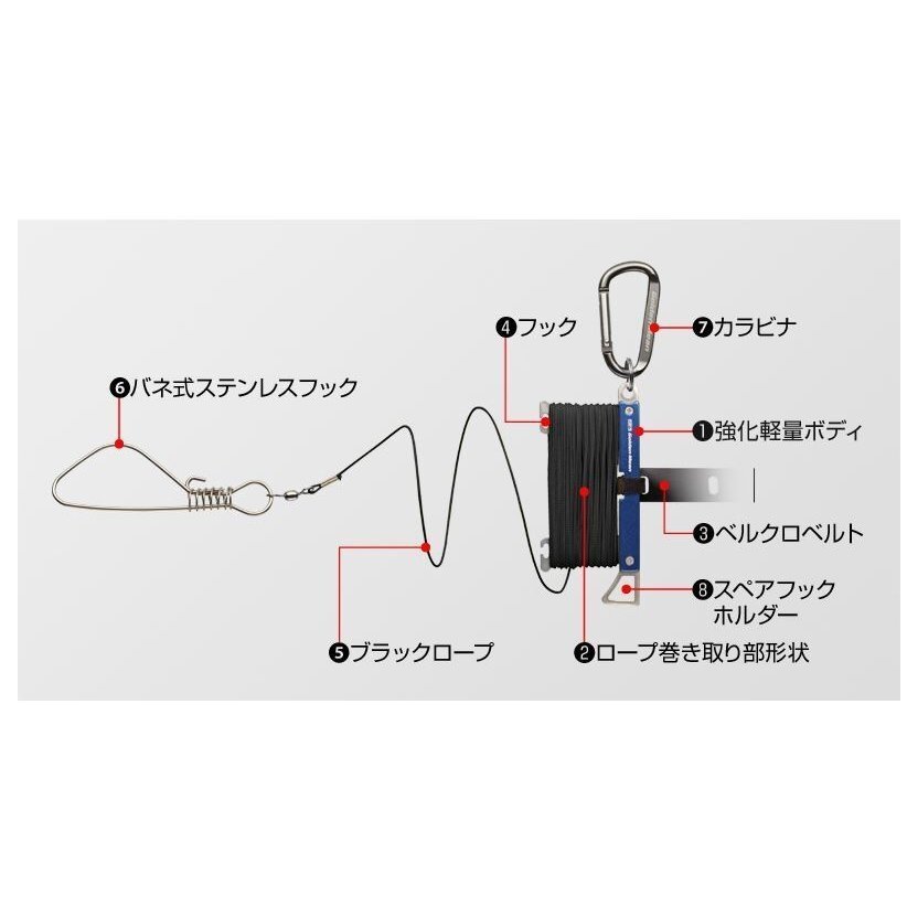 | 商品説明 | (ロープ・ブラック) 軽量 ・ コンパクトメタルストリンガー 「GMストリンガー」は軽量化はもちろん、実用性とモバイル性を兼ね備えたコンパクトメタルストリンガーです。 中型~大型魚のキープに最適な「L」サイズの2種類をラインナップ。フィッシングシーンを選ばないサポートギアです。 ●本 体:H150×W63mm ●自 重:112g(フック×1、ロープ、カラビナを含む) ●ロープ:φ1.5mm×15m ●フック:150mm