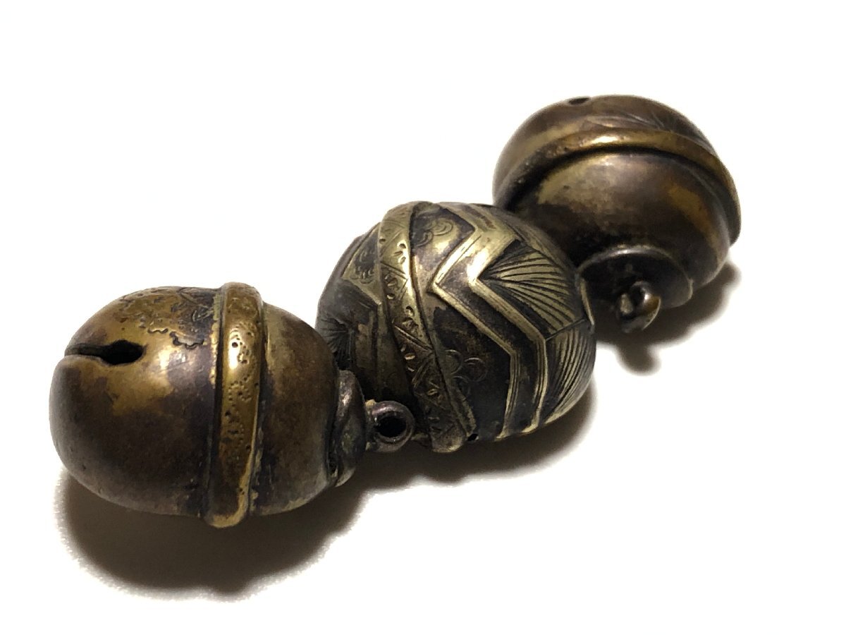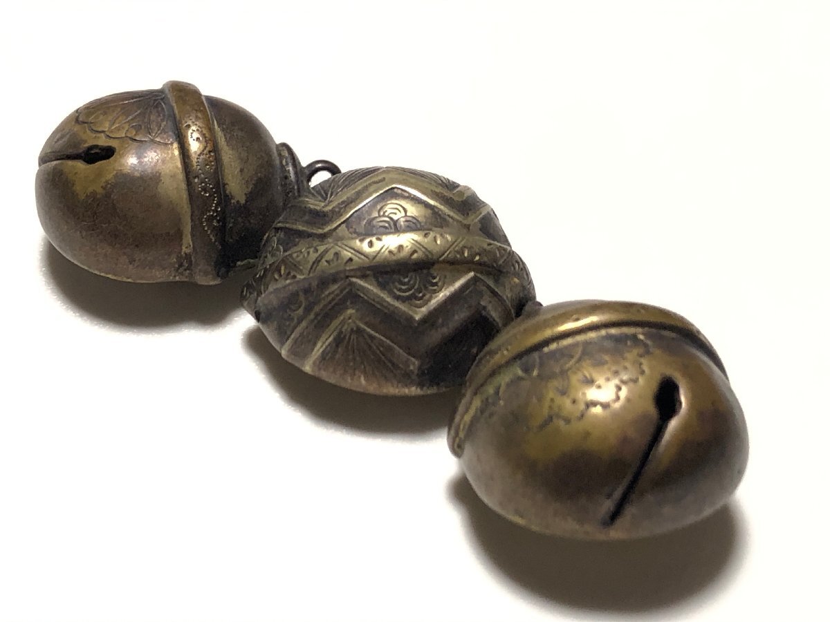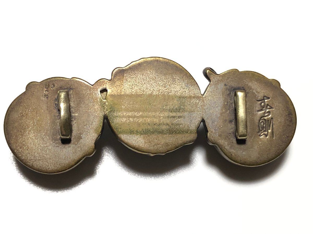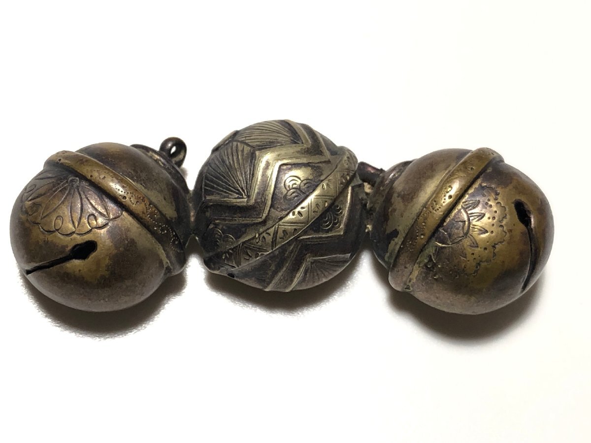 アンティークの彫金を施した、鈴と手毬細工の帯留めです。作者の刻印があります。帯締めを通す金具に若干の歪みがあります。金属面に変色があります。| 出价者 | 信用 | 价格 | 时间 |