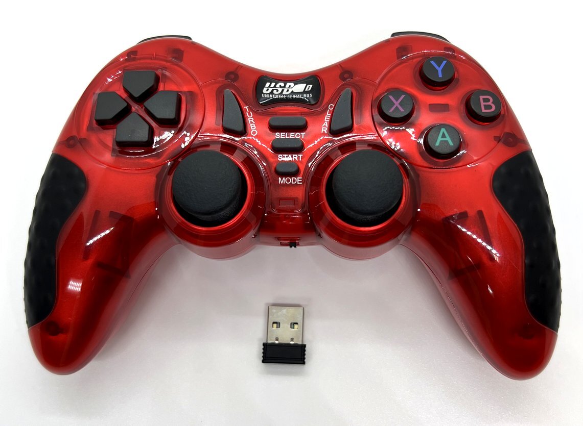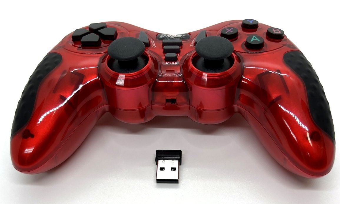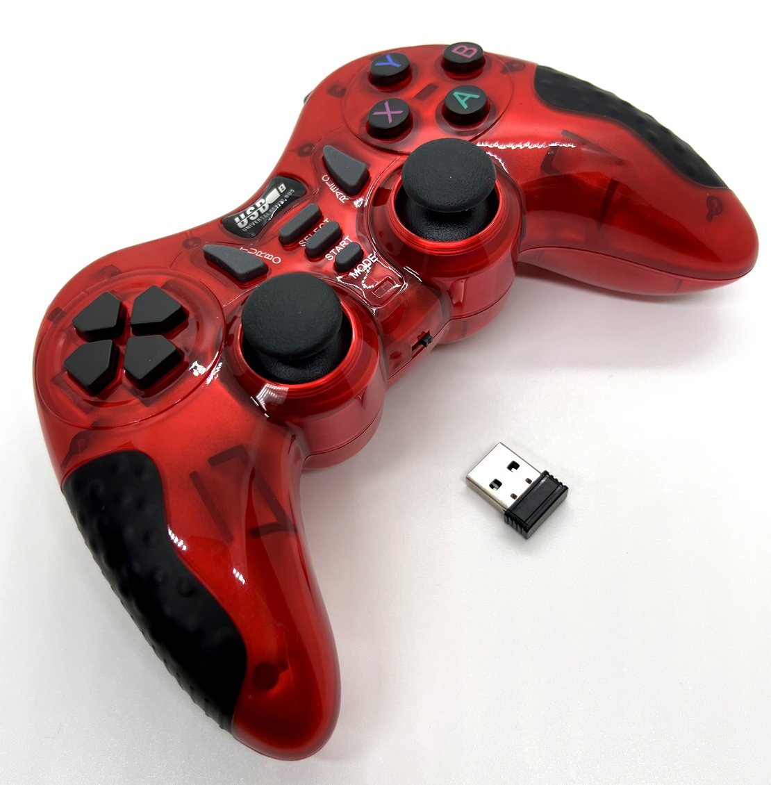 PC用のUSB接続 2.4GHz ワイヤレスコントローラーです。連射機能も搭載されております。USB端子にレシーバーを取り付けて、コントローラー側のスイッチをONにするだけで、使用可能です。複数個の同時使用も可能です。 |