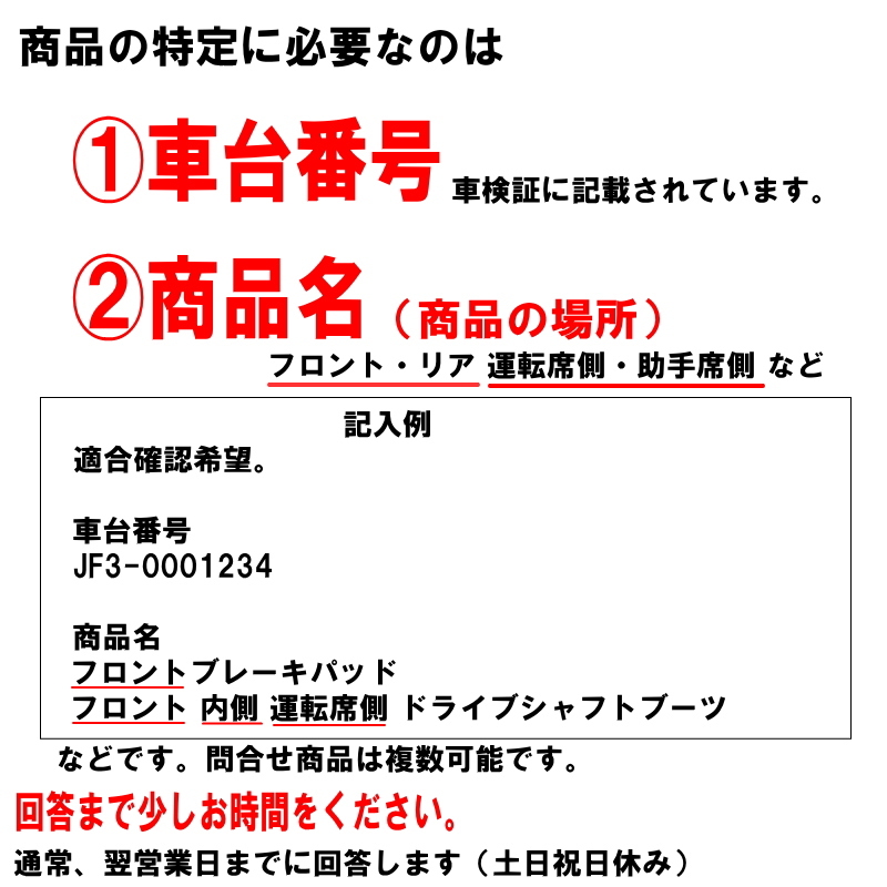 | ※楽札前に必ず適合確認・在庫の確認・納期の確認をお願いいたします。 ※事前確認のない注文のキャンセル・変更・交換・返品はお届けにお時間がかかる場合でもお受けできません。 ※事前に適語確認を行っていないご注文は商品の適合がお車に合わない場合にも返品交換不可となります。 ※落札後の変更などはできませんのでご了承下さい。 |