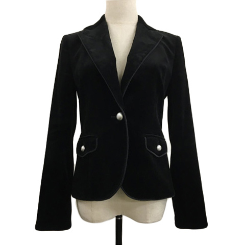 リフレクト Reflect ジャケット テーラード シングル ベロア トリミング 長袖 9 黒 ブラック レディース