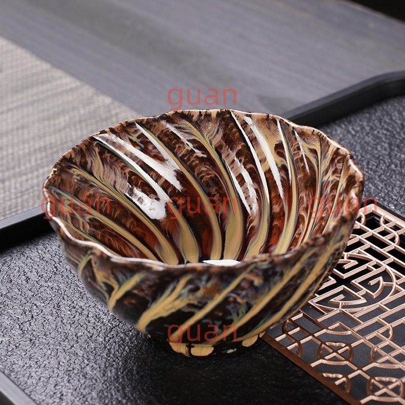 4.お茶汁を建盞に浸して、長時間を渡ると建盞も微妙な色変化が発生する。それは建盞の持つ主がお茶を飲む時のいい気持ちと感情が印刻されていると言われる
