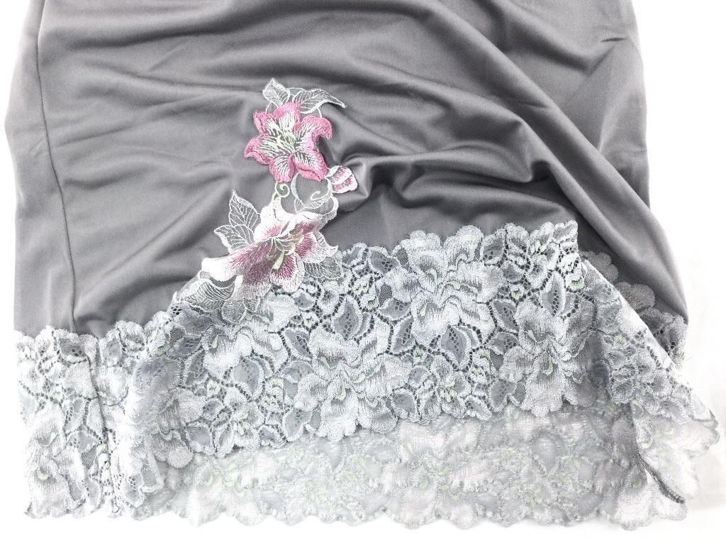 繊細なレースに華やかに咲き誇るユリのモチーフ刺しゅうが印象的。