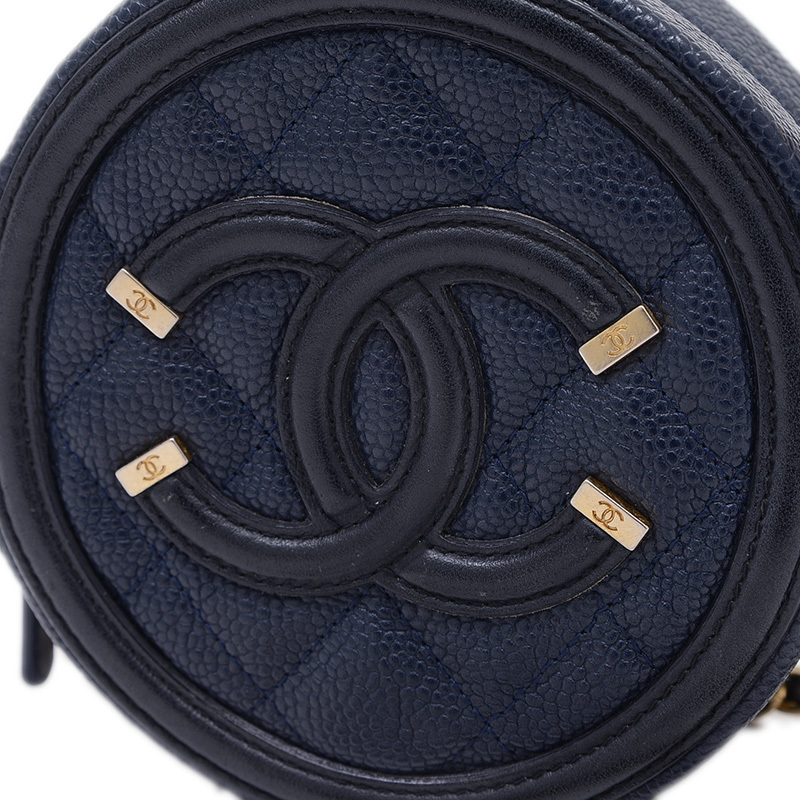 | 商品特徴 | その名の通り丸いフォルムが特徴的なチェーンショルダーバッグです。傷に強いキャビアスキン素材のネイビーカラーに、フロントに配されたCCロゴが際立ち、ロゴにはゴールドとシルバーのフィリグリー(繊細な装飾)が施されています。コンパクトながらも収納力があり、日常の装いに上品で洗練されたアクセントを添える人気のアイテムです。 |