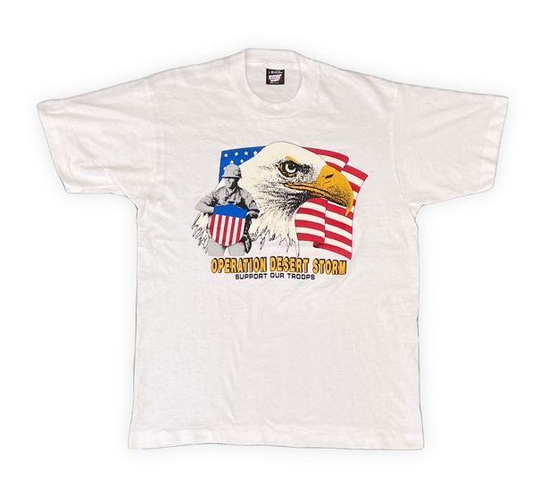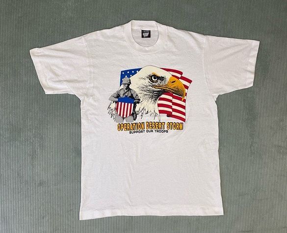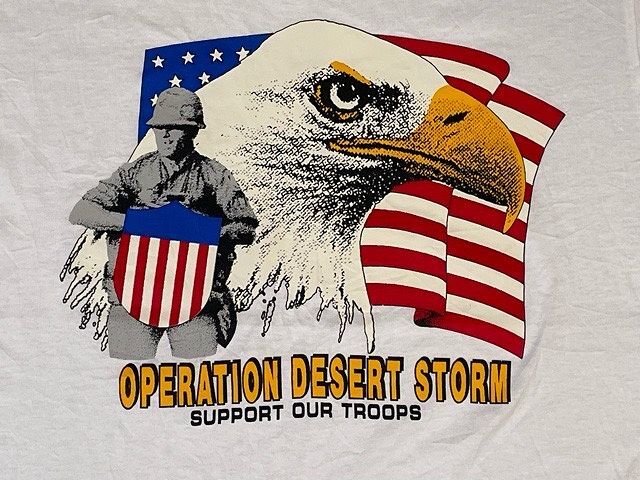 | 説明 | 90's スクリーンスターズボディのTシャツ Operation Desert Storm(砂漠の嵐作戦) 湾岸戦争プリント 袖・裾シングル アメリカ製 |