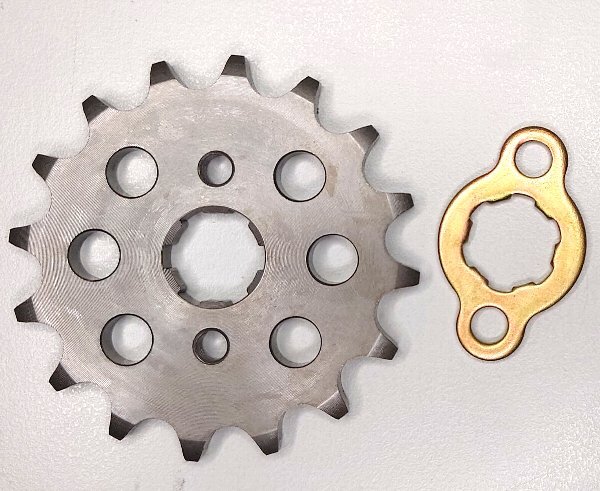 XAM製の軽量穴あきスチールスプロケット420-16T(新品)です。XAMから直接購入した正規品(日本製)ですが、パッケージには入っていません。適合はスーパーカブ50、110、110PRO、MD110(郵政カブ)、GROMグロムNSR、NSF、モンキー、ゴリラ等ホンダの小排気量車用です。車速をセンサーで検知している最近の車種ですと、スプロケの丁数を変えてしまうとメーター誤差が出る物がありますので、ノーマル丁数から変更をお考えの方はご注意ください。スプロケットを取り付ける際に必要となるフィキシングプレートもおつけします。複数枚有りますので、お送りするのは写真の物と同等品となります。複数枚ご入り用の場合は残枚数を質問欄から必ずご確認の上ご入札ください。