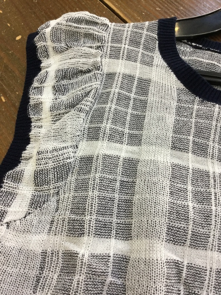 | 管理番号:10^121731 BE RADIANCE ビー ラディエンス 白チェックニット 表示サイズ:F 実寸(参考)