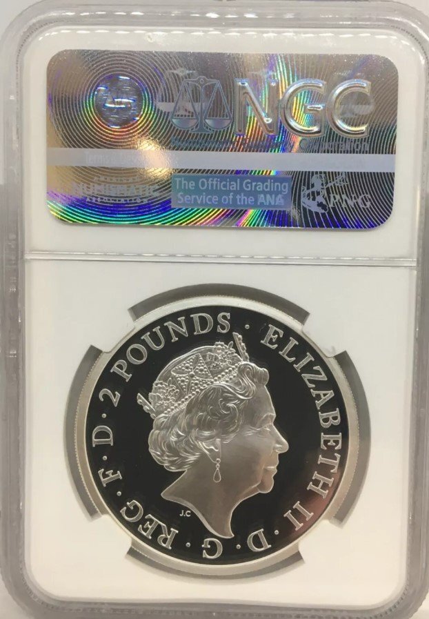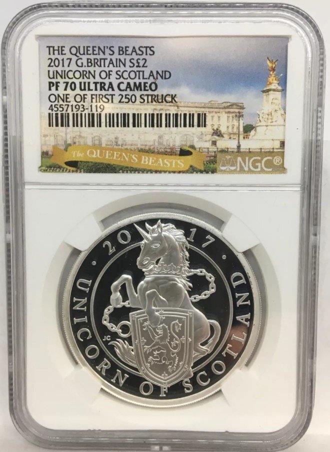 2017年 英国 クイーンズビースト 2ポンド ユニコーン銀貨 1オンス NGC最高鑑定 PF70 ウルトラカメオ 初期250枚ロット 特別ラベル [浏览原始页面]