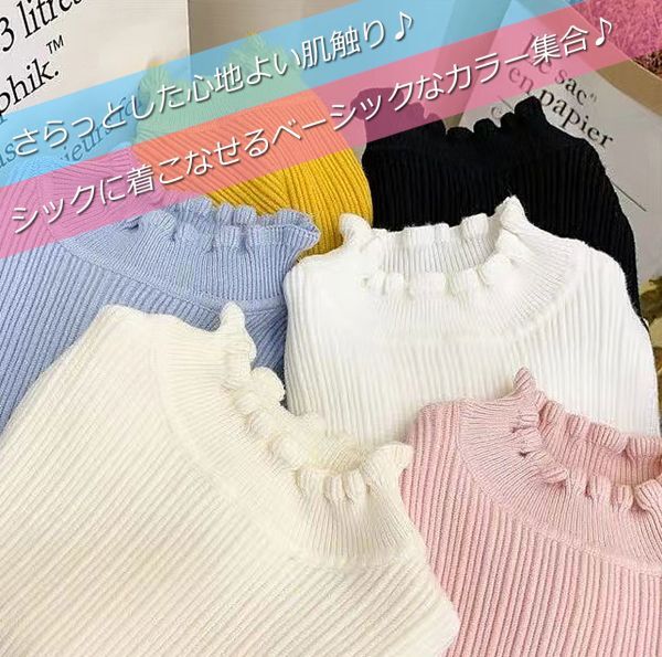 キッズハイネックフリルニットトップス