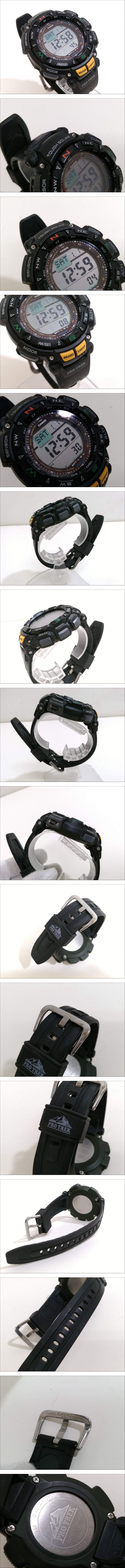 ※離島など別途中継手数料がかかる地域が御座います。 その場合はお振込みを追加でお願いする場合が御座います事、 事前にご了承の程、宜しくお願い致します。 ※送料には業者指定された運送用梱包資材代が含まれます。 専用BOX、段ボール梱包以外での補償は対象外となります。 [商品名] 1円スタート 【美品】CASIO カシオ PRO TREK プロトレック PRG-240 タフソーラー 腕時計 [サイズ] ケース(リューズ込み)約7×5.3cm, 風防直径約3.2cm, ベルト幅約3.7cm, 腕周り約15-22cm, ホール数11個 [素材] 樹脂×ステンレススチール他 [カラー] ブラック系 [型番] PRG-240 [状態] 風防はキレイです。 樹脂部分に薄い汚れ、ベルト留め金属部分にキズにが御座いますが、