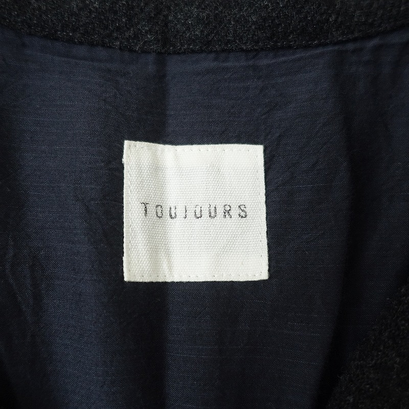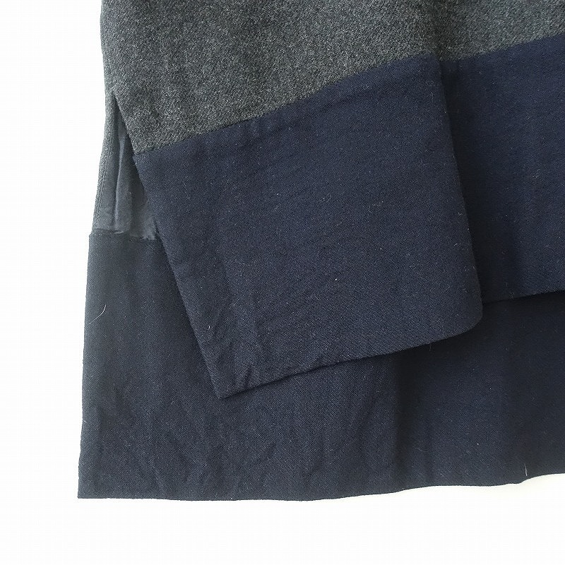 | TOUJOURSのセーラーカラー異素材切り替えワンピースです。カラーはチャコールグレーで、起毛した暖かみのある素材で仕立てられ、裾はネイビーの別地に切り替えられています。プルオーバータイプの着脱で、裾はサイドにスリット入り、両サイドにポケット、裏地付きです。 |