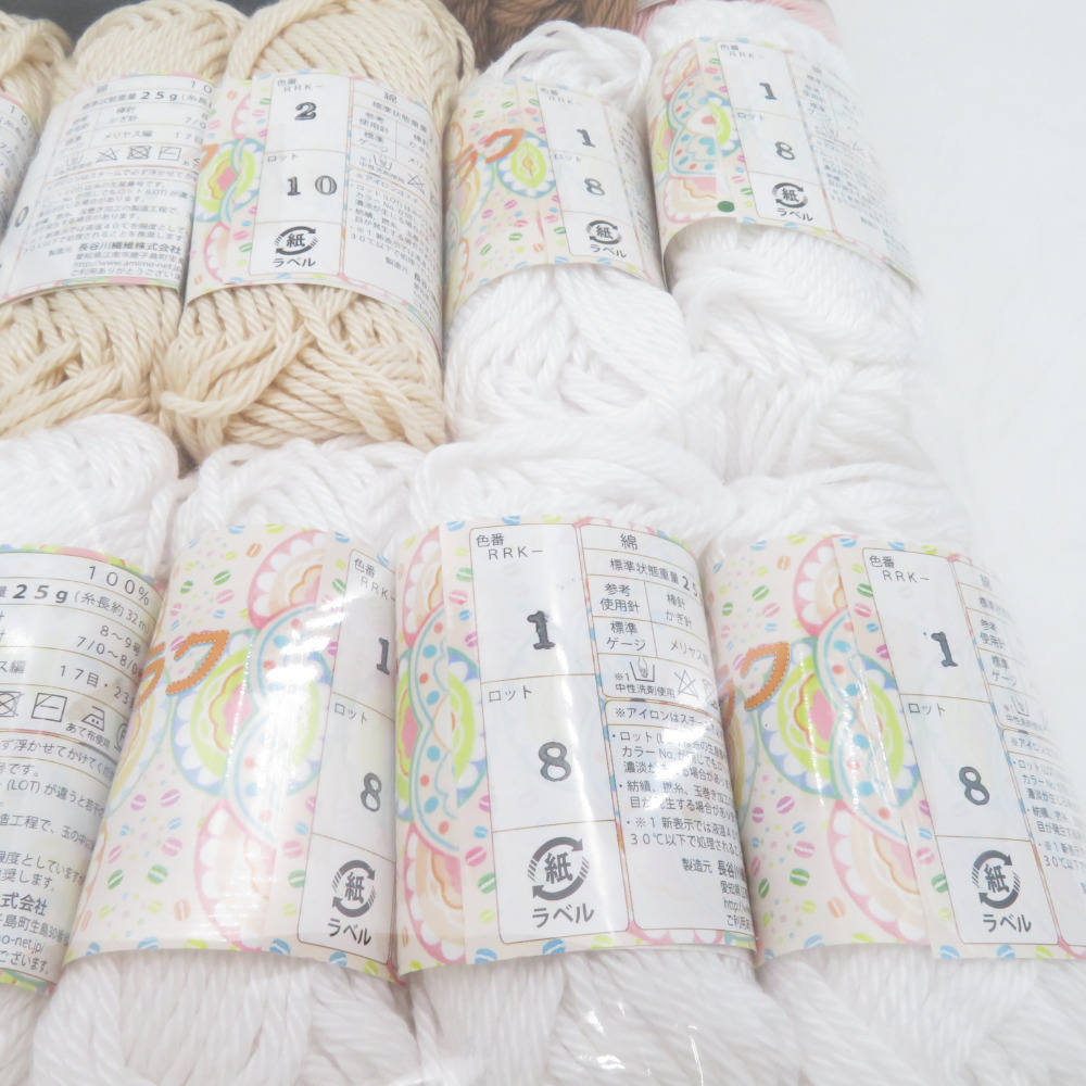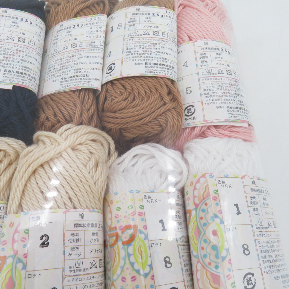 | 毛糸 あみもねっと 楽ラクコットン 18玉 アソート 1玉25g巻 約32m 綿100% 日本製 極太 春夏毛糸 未使用品 |