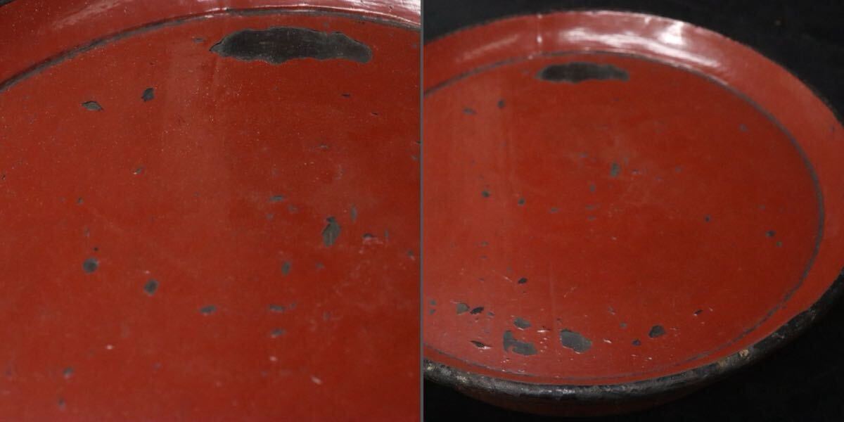 | 時代 朱漆塗 木地盆 台付 刳り貫き 丸盆 / 漆器 漆芸 盆 天然木 菓子器 検索: 根来 根来塗 .B1269 |