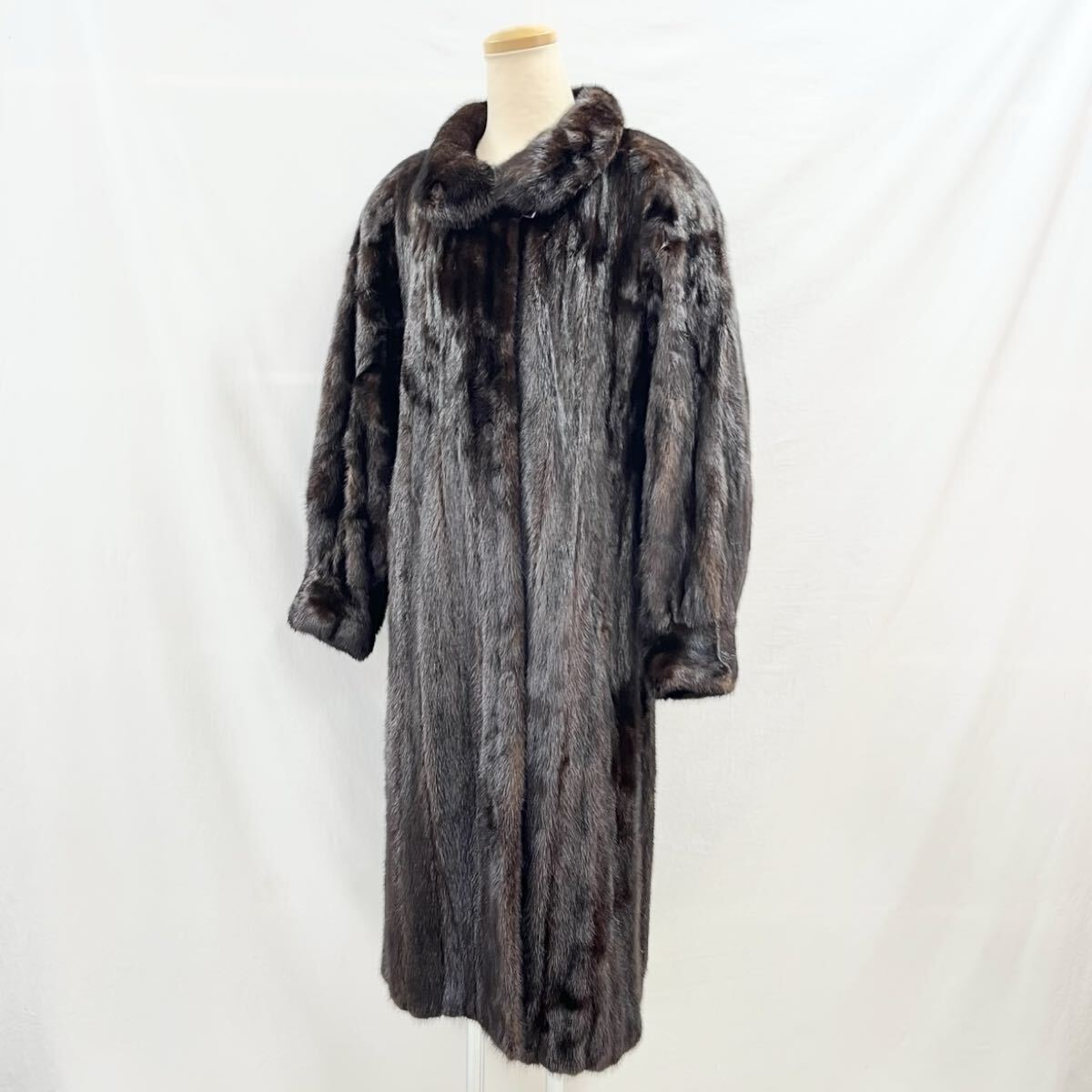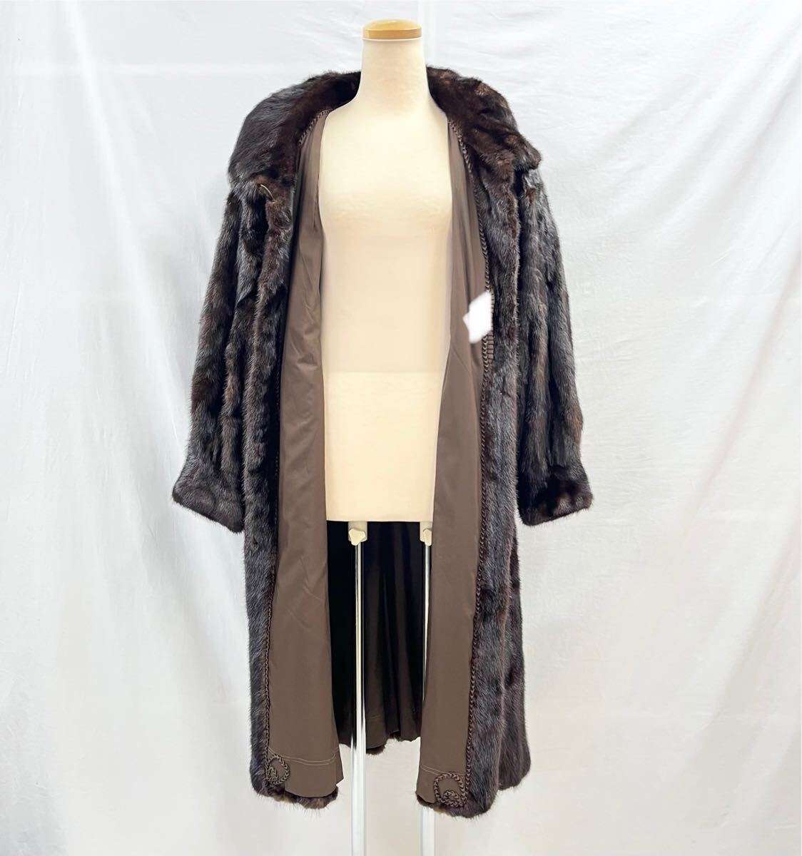 ・FN17236M【1000円スタート!!】毛皮 ミンク ファー コート ロング レディース ダークブラウン 13号