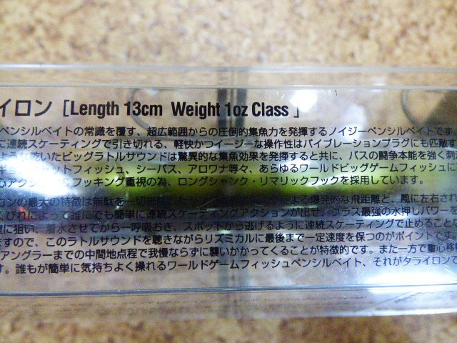 こちらは60サイズでの発送を予定しております。 送料など詳細は「梱包・発送について」欄に記載しておりますので、そちらをご確認ください。 イマカツ タライロン #18 詳細は写真でご確認ください。 写真のものがすべてです(ルアー以外のものはイメージのため、付属しません) こちらは未使用品です。 家庭での保管品となりますので、写真をご確認の上での入札をお願いいたします。 ※梱包について※ 緩衝材を使用した梱包をご希望の場合は60~100サイズまで100円、120~170サイズまで300円を頂戴いたします。 落札時にご希望の旨を必ずご連絡下さい。ご連絡がない場合は簡易梱包で発送致します。 簡易梱包の場合、追加費用はかかりません。 ※簡易梱包は緩衝材等を使用しませんのでご了承下さい。 素人なりに配慮した梱包を心掛けております。 しかしながら配送中にどうしても欠け、ひび、割れ等発生する場合がございますが免責とさせて頂き、返金等は致しかねますのでご了承・ご了解の上ご入札下さい。 詳しくは梱包・発送についてをご確認下さい。 商品ランク(ランクの記載のない商品もございます) A:新品・未使用品。 B:未使用に近い状態です。 C:中古品ですが目立った傷や汚れありません。 D:中古品の為、やや傷や汚があります。 E:中古品の為、傷や汚れ等の使用感が多数あります。 F:全体的に状態が悪い。 ☆個人での主観評価となりますので参考程度にしてください。 | ||||||||||||||||||||||||||||||||||||||||||||||||||||||||