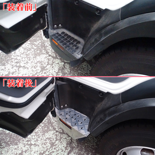 | 商品説明 | ※いすゞ いすず 07 フォワード専用 ステップガード 足置き ボード スカッフプレート ステップガード 縞模様 シマ ステンレス 専用設計 滑り止め効果アップ ※防錆効果 耐久性の高い SUS304ステンレス 2007年以降~ フォワードのステップび合わせた専用設計! 【商品説明 適合車種】 ■適合車種:いすゞ イスズ 07フォワード用 4トン ■左右セット ■従来の樹脂製の足元ステップ部分を縞模様ステンレスでカバーし、サイドの反射板 オレンジマーカー部分を隠さない設計 ■年式:2007年 H19.7以降~2RG-FRR90S2 U2系 ■取り付け専用ビス、ステー 両面テープ付属 ■素地色 シルバー シマ板 SUS製ステンレス 表面 縞模様 ■取付方法 :取り付けは純正ステップボードにかぶせ、付属の平板ステート、付属のボルトで締め付け装着するだけです。 ■装着に際し、付属の両面テープで固定、補強します。 ■雨の日や、雪の日、濡れた足元を滑り止め効果をアップさせる表面凹凸のある縞模様ステンレス ■サイド側の、反射板マーカー周りの樹脂部分も縞模様ステンレスでカバーし、サイドビューのイメージもチェンジできます。 ■見た目の良い、トラックらしい、さりげないドレスアップパーツです。 ※当方で、商品を製造しております工場を紹介した動画を、商品ページ上に掲載しておりますので是非ご覧ください。 ※装着後、高級感とグレード感がアップします、サイドビューのイメージが変わります! ■貼り付けだけで高級感、グレード感、スポーティ感がアップ キズ隠し、純正ドアミラー部分の補修などを隠すアイテムとしても使用できます ■装着車両写真はすべて当方で装着を確認して撮影したものです マッチング確認済み、装着感良い設計です ※取り付け説明書はありません、装着は純正ドアミラーにかぶせるだけの貼り付け装着になります ※装着前に純正ステップの汚れ、脂分をきれいにしてから装着してください。ネジ止めは緩みのないよう、しっかり締め付けしてください。両面テープ部分の粘着力が弱い場合はテープ追加等の補強をお願いいたします ※粘着力が弱い場合、寒気、湿気のある場所などでは、工業ドライヤー等で温めながら貼り付け、または両面テープの貼り増しなどで対応してください ※他にも、当方でトラック関係のドレスアップ商品を多数販売しております! ※左右セット 全国送料無料にて発送いたします ※本商品は保管品、商品材料の性質上、細かい擦れキズ等、見落とし等がある場合がありますが返品対象にはなりません。 ※商品取り付けに関しては各自の自己責任、専門業者様へのご依頼をおすすめいたします ※商品は発送のみでの対応になりますので、直接のお引き取りには対応しておりません ●管理番号 3126 いすず フォワード サイドステップ スカッフプレート シマ板 縞模様 |