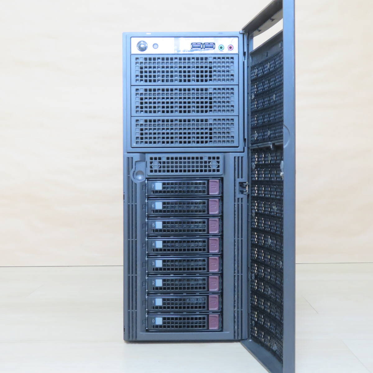micro製 Super micro 747-22 Super micro 747-22は、インテル Xeon スケーラブル・プロセッサーと、NVIDIA GPUに対応したハイエンドGP GPU ワークステーションです。 ラックマウントにも対応するタワー筐体に、最大2CPU、1TBメモリ、3.5型 SAS/SATA HDDを8台、 GP GPUカードを4基搭載可能です。 ■Intel XEON Platinum 8160を搭載 業務用CPU Xeonシリーズ Intel XEON Platinum 8160を2個搭載。48コア96スレッドのハイパワーCPUです。 デュアル構成(CPU を2つ搭載)なので単純に2倍の性能がありかなりパワフルです。 ターボブーストクロックは3.7Ghzで動作、96個のタスクを同時に処理し何をするにもストレスフリーな最速マシーンです。 一般的なデスクトップ搭載CPUとはかけ離れたスペックにて動作し、動画編集・レタリング作業等の高負荷作業でも安定して 動作し高速なマルチメディア性能を発揮します。 ■128GBの大容量メモリ搭載 48コア96スレッドのCPUを活かすために高速処理に必要なメインメモリーは大容量の128GB搭載されています。 3DCAD、CG、動画、映像制作、建築系CADなど様々な分野で性能を発揮します。 通 常のメモリと違い、高性能なECCメモリを使用。ECCメモリとは「データの破損を検出し、自動的に訂正する」機能がついているメモリです。一般的なメ モリに比べて高性能、高耐久になります。 XEONとECCメモリは業務用サーバーやワークステーションに特化した組み合わせで、データの破損が絶対に許され ないような金融機関、科学技術計算、サーバー業務などに使用する機種に搭載されます。 ■NVIDIA GPUを最大4基搭載可能 Super micro 747-22は、NVIDIA GPUを最大4基搭載可能です。 GPGPUとは、General-Purpose computing on Graphics Processing Units の略で、GPUの演算資源を汎用の計算に応用する技術のことです。 NVIDIA社が提供するGPGPU専用の統合開発環境 CUDA(クーダ)によって、単純なデータを一度に大量に処理することで非常に 高いパフォーマンスを発揮します。 ■前面からアクセスできるHDDエンクロージャに最大8台の3.5型 HDDが搭載可能 Super micro 747-22は、3.5型 SAS/SATA HDDを最大8台搭載可能です。HDDは前面からアクセスできるホットスワップエンク ロージャに収納され、レバー操作で交換できるため、メインテナンス作業が容易に行えます。 ■最上位 80PLUS TITANIUM 認証を取得した高効率電源を搭載 Super micro 747-22は、80PLUSで最上位ランクの80PLUS TITANIUM認証を取得した高効率な電源を搭載しています。 80PLUS認証とは、交流から直流への変換効率を保証するものです。80PLUS TITANIUM認証は、負荷率10%/20%/50%/100% でそれぞれ90%/92%/94%/90%という高い変換効率基準をクリアしたものだけに与えられます。 ■冗長化電源搭載による高い障害耐性 Super micro 747-22は、100Vから240Vに対応した1000W電源ユニットを2個搭載し、一方の電源ユニットに障害が発生した 場合でもサーバーの運転を継続するための電力を充分に供給できる冗長性を持っています。 これにより万が一の電源ユニット障害によるダウンタイムを最小限に抑えることが出来ます。 モ ニターや入力機器があれば到着後すぐにご使用が可能です。 |