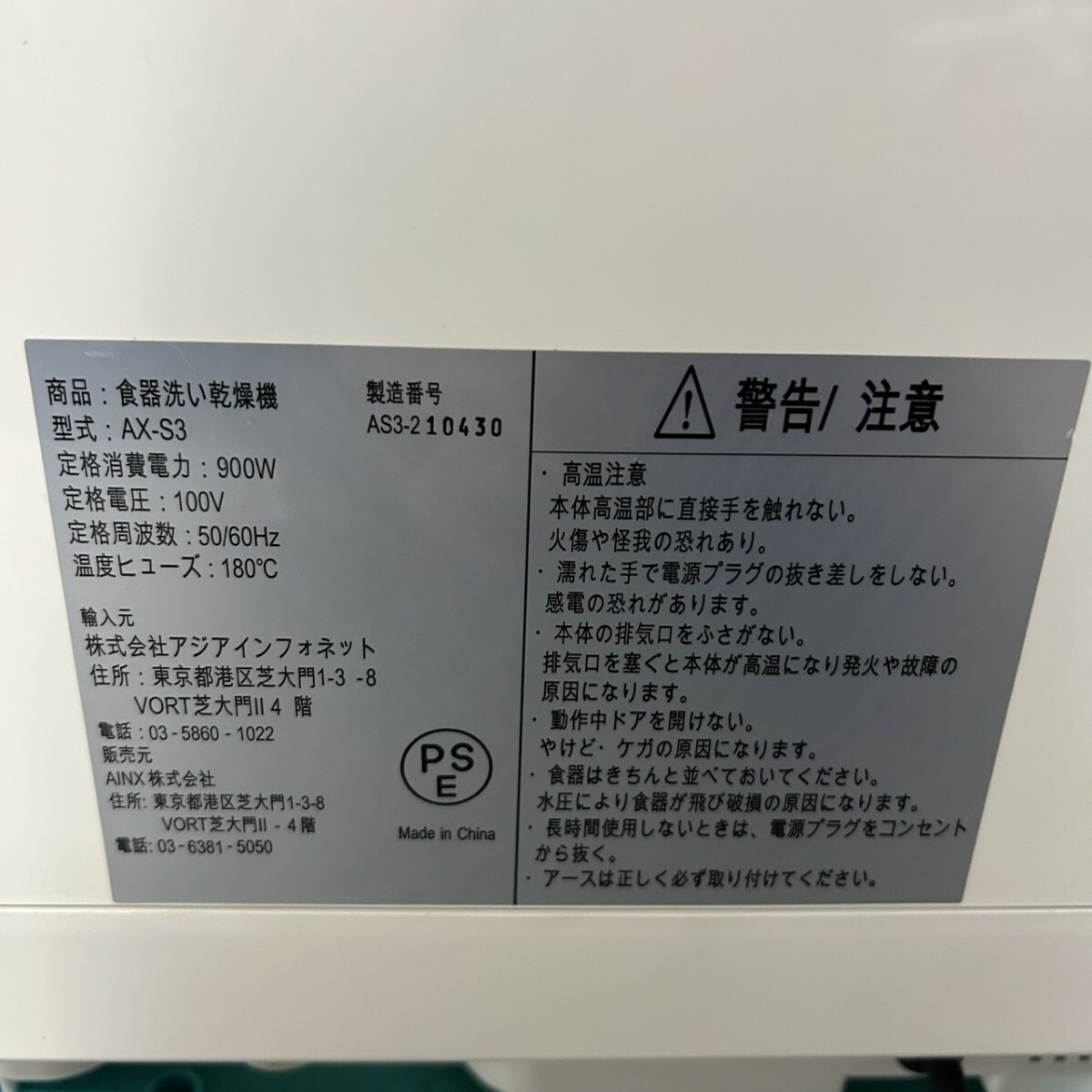 アイネクス AINX AX-S3 食器洗い乾燥機 2021年製 ホワイト 工事不要| 出价者 | 信用 | 价格 | 时间 |