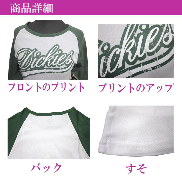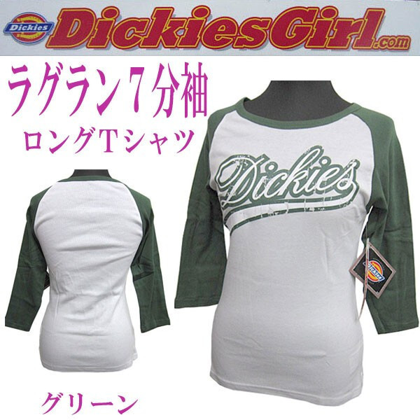 Dickies Girl(ディッキーズガール) ラグラン7分袖 Tシャツ グリーン (S) です。 ■素材 コットン100% ■サイズ 身幅約36cm×着丈約56cm ■特徴 西海岸生まれのディッキーズガールラグランロングTシャツ! 七分丈袖になっていて、キュートで可愛いデザインになっています。 | ||||||
