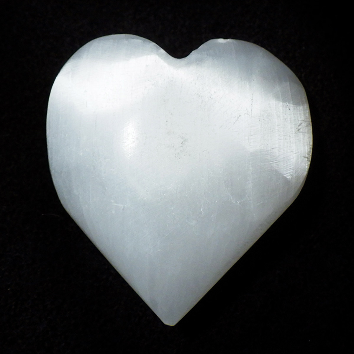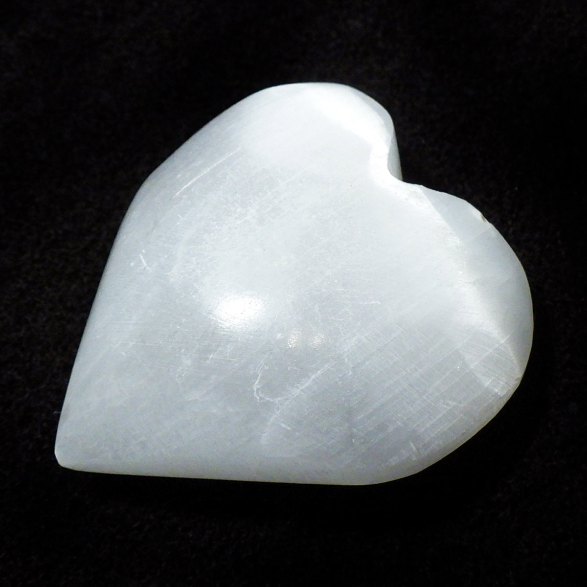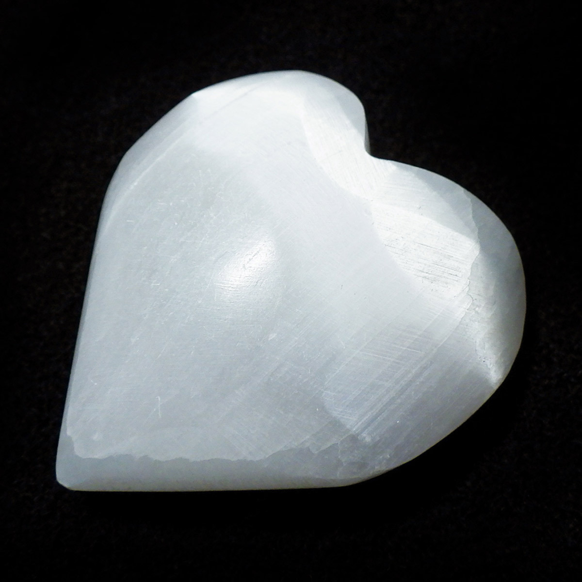 モロッコ産のセレナイトで出来たハート形の置物です。ジプサム(石膏)の透明度が高いものを、セレナイト(透石膏)といいます。大きく美しい結晶はかつて「聖母マリアのガラス」と呼ばれ、窓ガラスに利用されることもあったそうです。マットな質感が特徴的で、セレナイトのシルキーな光沢が幻想的です。 水分や油脂が苦手な石なので、取り扱いには注意が必要です。| 出价者 | 信用 | 价格 | 时间 |
