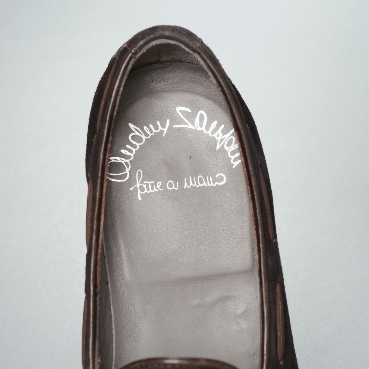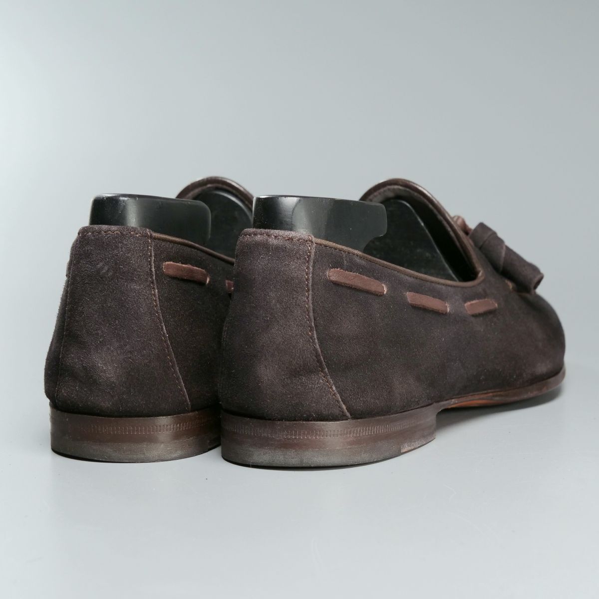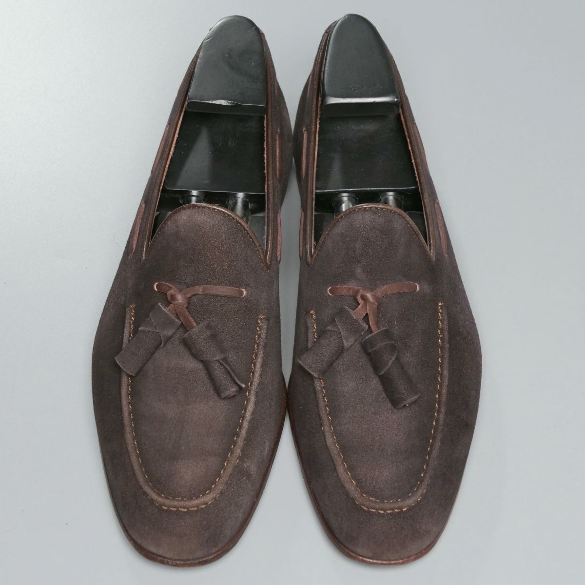 イタリア靴の中でも歴史の浅いシューメーカーながら、その評価は100年を超える老舗にも等しいとさえ言われる名門「Santoni/サントーニ」の一足です。 暗い茶のスウェードレザーをアッパーに用いたモカシンフロントのタッセルローファー。 コバをコンパクトに抑えたスマートなラウンドフォルムで形取られ、落ち着きのあるシンプルな佇まいを表現しております。 製法:マッケイ アウトソール:レザー トップリフト:レザー×ラバー ライニング:レザー ※撮影用のシューキーパーは付属致しません。 ※本物の商品ですのでご安心の上オークションをお楽しみ下さい。 ※タイトル頭の英数字は弊社の管理番号です。 ※ほかにも多数の商品を出品しています。 ※同梱に関しましては「まとめて取引」でのみ対応可能です、その他の方法での同梱対応は出来かねます。 (※商品の特性上、同梱対応出来ない商品もございますので予めご了承下さい。) |