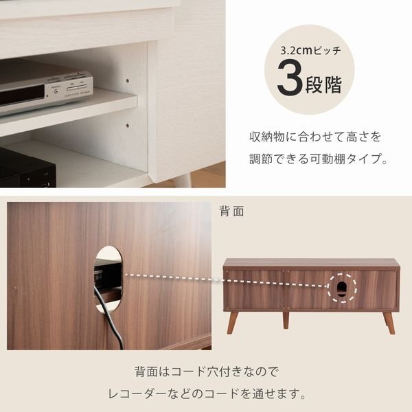 幅105cmの40型テレビ対応。 フラップ扉で隠して収納。 見た目スッキリでお部屋もスッキリ。 どんなお部屋にも馴染むシンプルなデザイン。 フラップ扉で収納部分をおしゃれに隠せる優れもの。 スマートな見た目でお部屋もスッキリ。 脚付きだからお掃除も楽々。 |