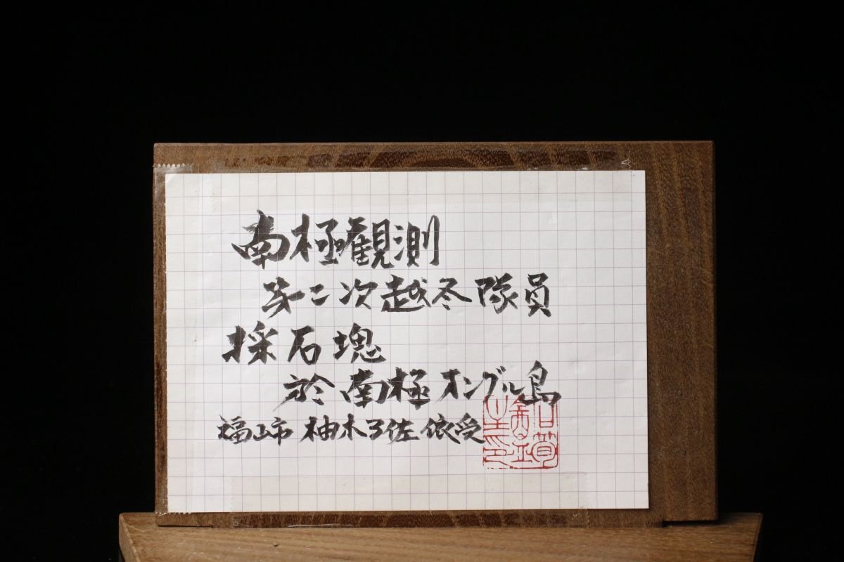 [.Y]25.10 25102315T* * * 商品詳細 * * * ここでしか出逢うことのできない唯一の美をご紹介させて頂きます。 第17次南極観測・第二次越冬隊員 若土正暁 採石品 氷と風の大陸・南極。その厳寒の地で採取された希少な天然石が、いま静かに語りかけてきます。 本品は、第17次南極地域観測隊・第二次越冬隊員である若土正暁氏によって、オングル島にて採取された実物の南極石です。 人跡まれな極地で採掘されたこの石は、氷雪の下に数百万年の時を経た地殻の断片。 2kgという重厚な塊に、地球最南端の大地の記憶が宿ります。 その静謐な灰白色の肌には、極地の風雪が刻んだ自然の造形美が見事に表れています。 ■商品内容/ 石、立札 ■サイズ/横18.5㎝×高6.5㎝×奥行15.5㎝ 2kg ■状態/ スレ、傷、汚れがございます。 ※写真にてご確認、ご了承の上ご入札下さい。