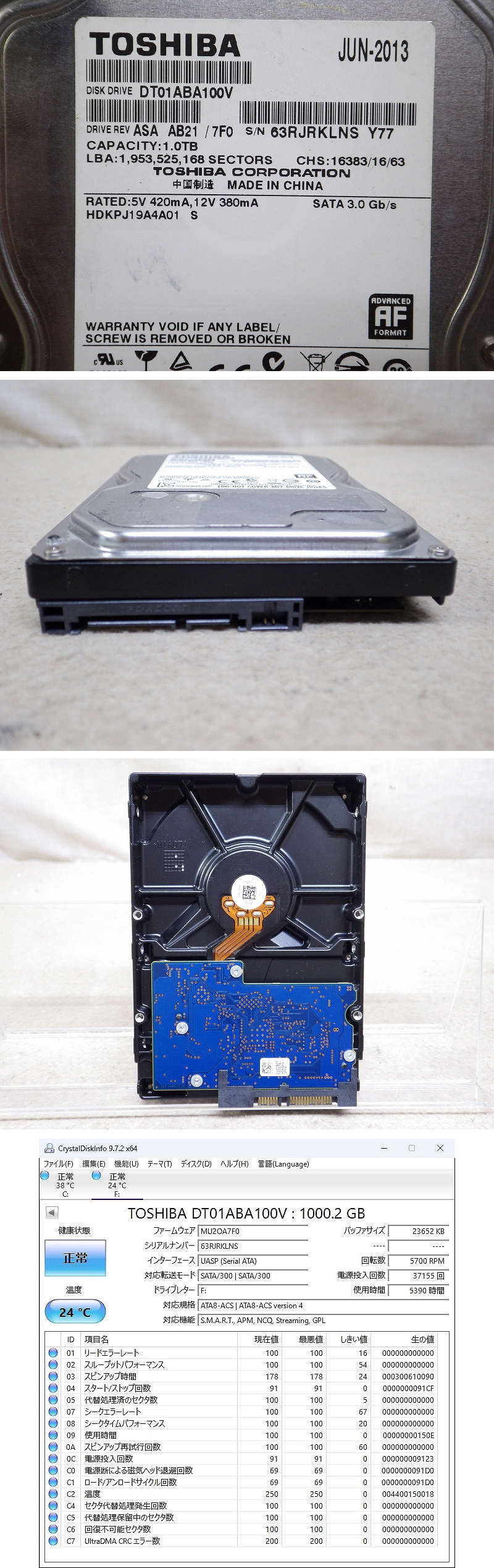 | 商品名 | Kネま2058 東芝/TOSHIBA SATA 3.5インチ 内蔵HDD 1TB DT01ABA100V パソコン周辺機器 PCパーツ ハードディスク |