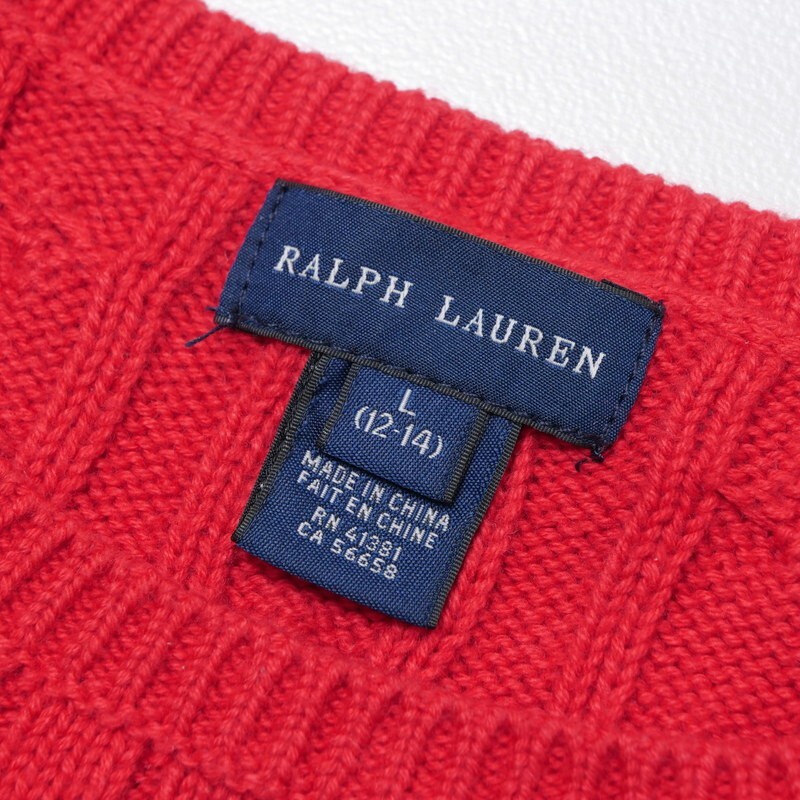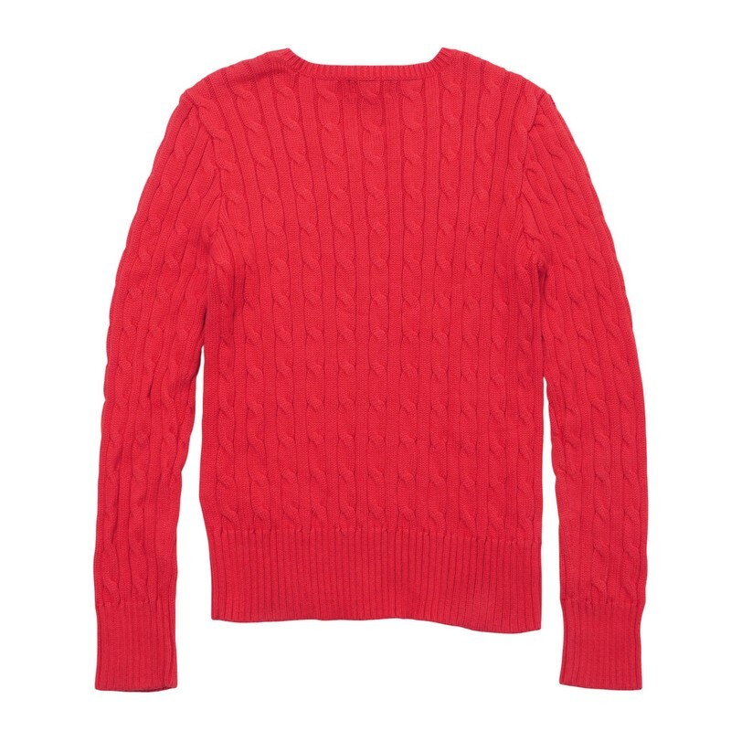 | TJ3485□ラルフローレン/RALPH LAUREN ケーブル編み コットン ポニー刺繍 クルーネック 長袖 セーター ニットプルオーバー レッド系 | |||