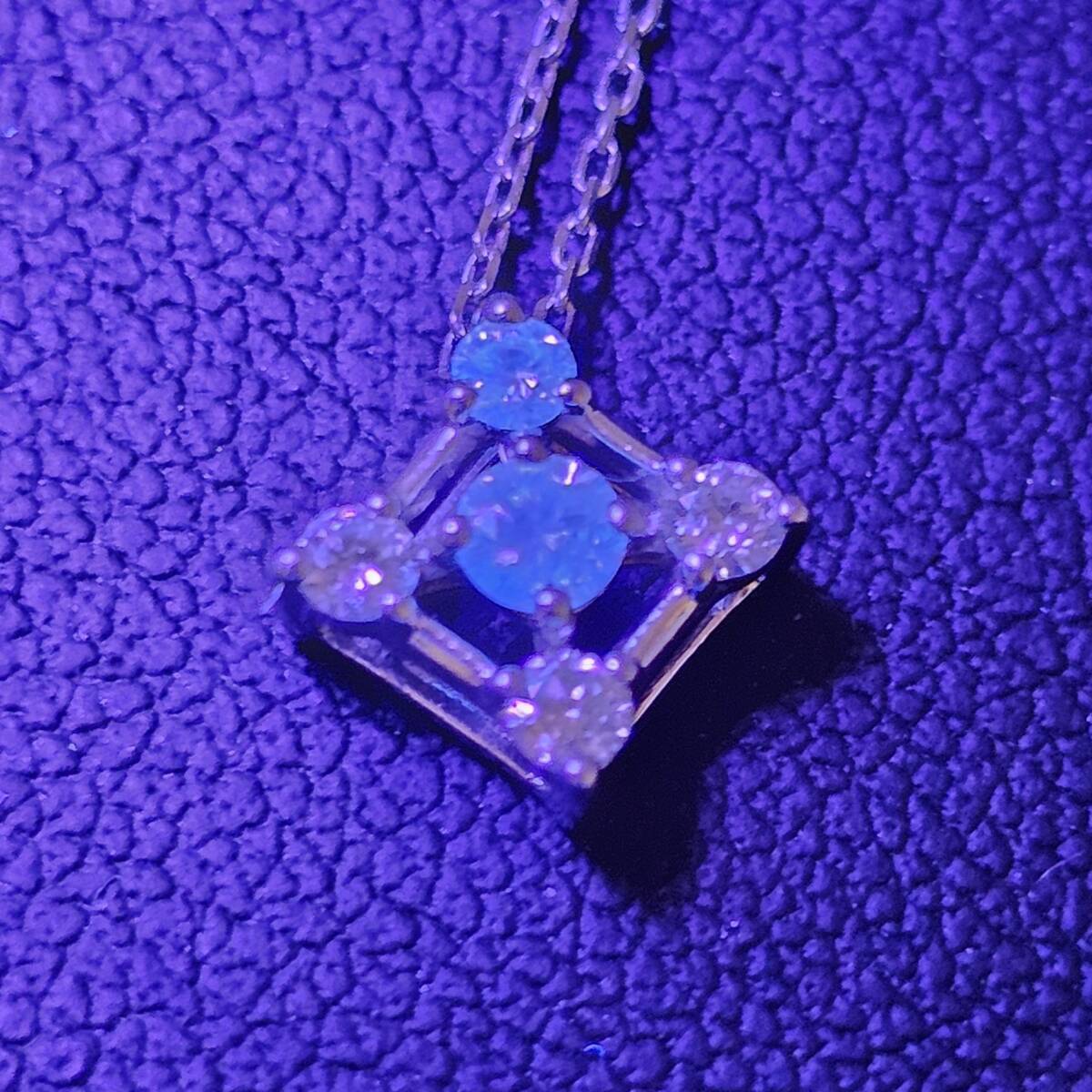 こちらは、胸元で上品に輝く、プラチナ製の天然ピンクダイヤモンドネックレスです。