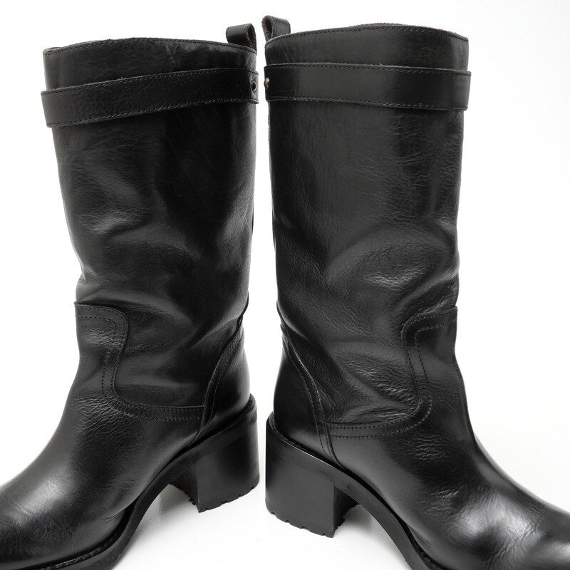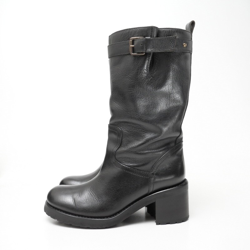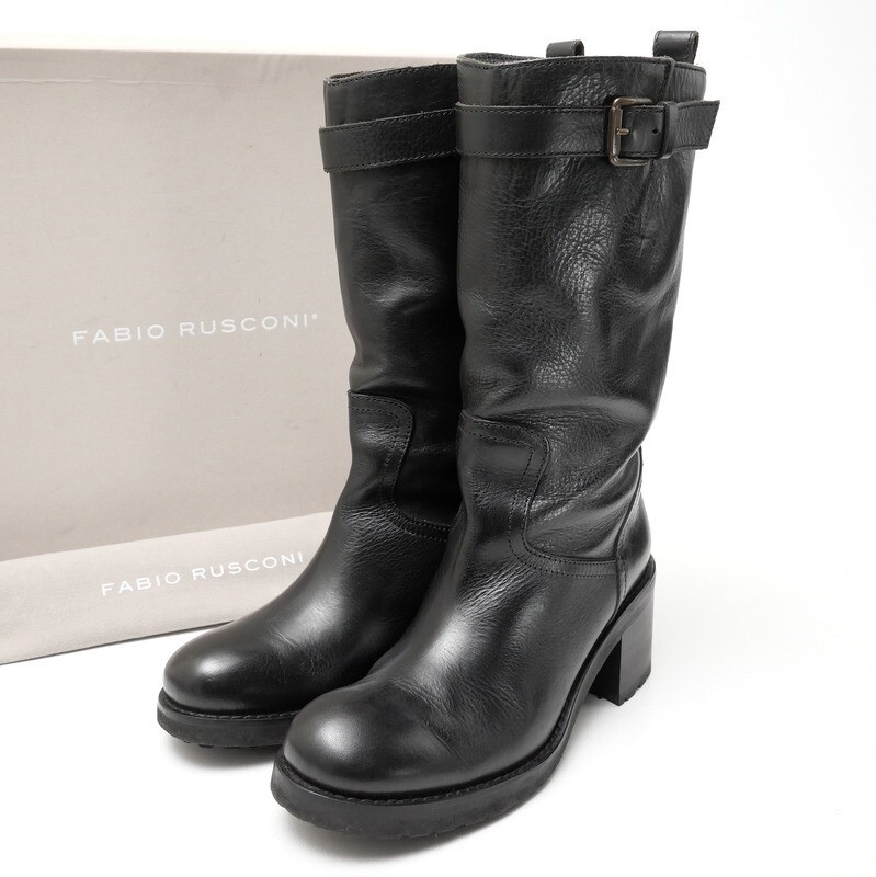 | MI2326*イタリア製 FABIO RUSCONI ファビオルスコーニ Size 36 レザーブーツ ミドルブーツ ベルト装飾 靴 ブラック | |||