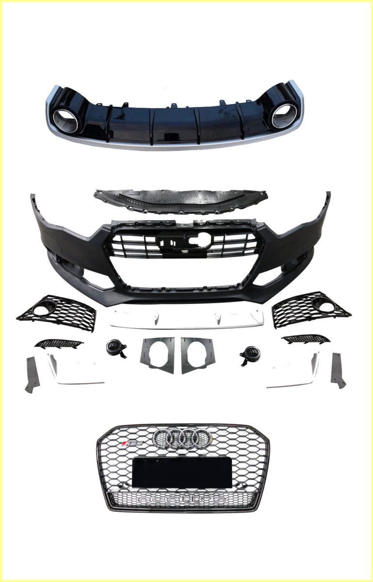| 商品説明 | ☆新品・超激安即決!☆アウディ後期A6用☆RS6Lookウレタン製フロントバンパー&RSグリル&リアバンパーset ☆新品・アウディ 後期4G A6用 RS6 Look 前後 エアロ一式セット グリル 付属品付き! ☆安心の国内在庫所有&国内発送! フロントバンパーに関しましては、よく有るセンター繋ぎ合わせ物では無く、良質ウレタン型取り1本物です 【適合年式 モデルグレード 型式】 【年式】 H27(2015)~ 【モデル、グレード】 アウディ A6 S6 RS6 【型式】 4GCYG 4GCYPS 4GCRES ※フロントレーダーのチェックランプ点灯などもなく取り付けして頂けます 【商品セット内容】 ・RS6 Look フロントバンパー ウレタン製 (センサー穴有) ・RS6 Look ラジエーターグリル(枠・メッシュ部分共ブラッククリア塗装済) ・RS6 Look リアディフーザー ウレタン製 ・フロント センター リップスポイラー(シルバー塗装済み) ・左右クーリングエアグリル(フォググリル) ・ダミーフォグランプ左右(ダミーですので点灯等はしません。ブラックレンズタイプ) ・牽引フックカバー ・アンダーカバー ・アウディマーク ・クアトロロゴマーク ※ナンバープレート台座のみ純正移植お願いいたします。 ☆別売アンダーリップスポイラー必要の場合¥24000-(税別)で同梱発送させて頂きます ※リア ディフューザーに関しましてはアバント系取り付け不可でフロントのみ(¥89000-税別)でご了承願います ☆カスタムパーツの装着で愛車が一変致します♪ |