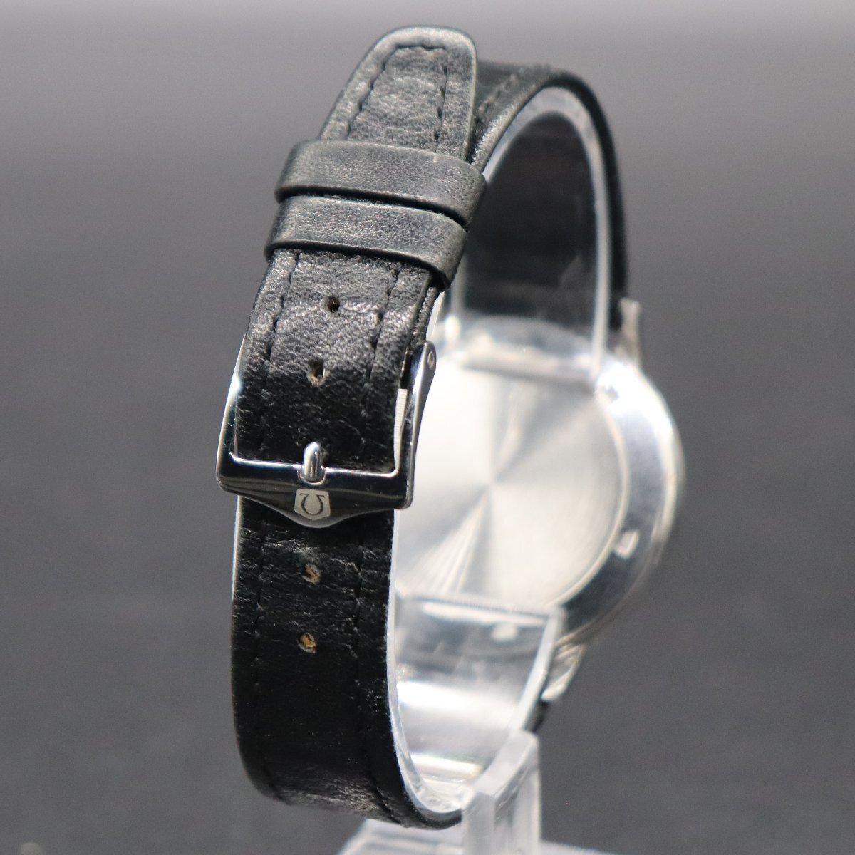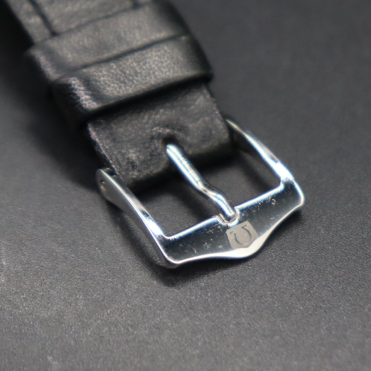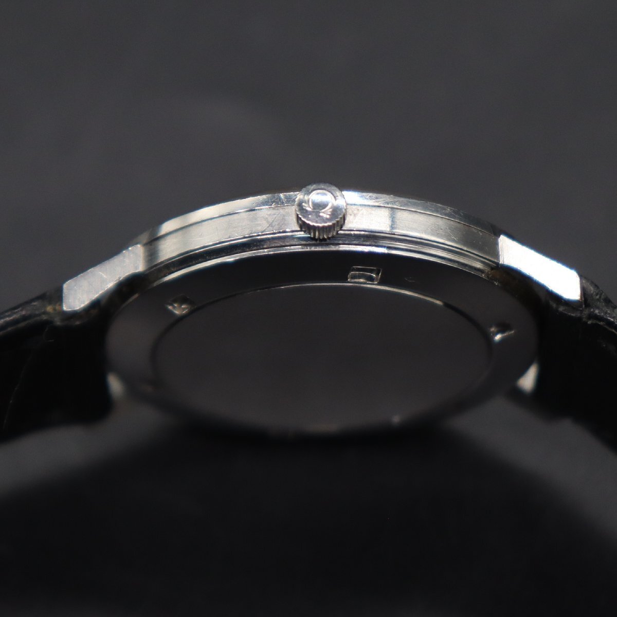 平置きで12時間動作確認済み、大幅な遅れなく稼働中です。 リューズ一段引きで時刻調整が可能です。 全体に経年のスレ・キズ・小打痕・小汚れ、 風防に小キズございますが、視認性は問題なく良好です。 針に小傷み、夜光に経年劣化見受けられますが、 インデックスは傷み少なく、文字盤は目視できれいです。 ロゴや印字に消えや擦れなく、経年の割りにきれいなダイアルです。 風防中央、透かしΩマークございます。 リューズ、Ωマーク付き純正品です。 ベルトは使用感ございますが、尾錠は傷み少なく良好です。 通常使用に問題ございません。 アンティークですので、詳しくは画像にてご判断願います。 |