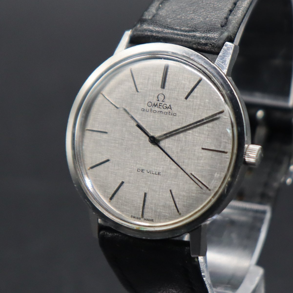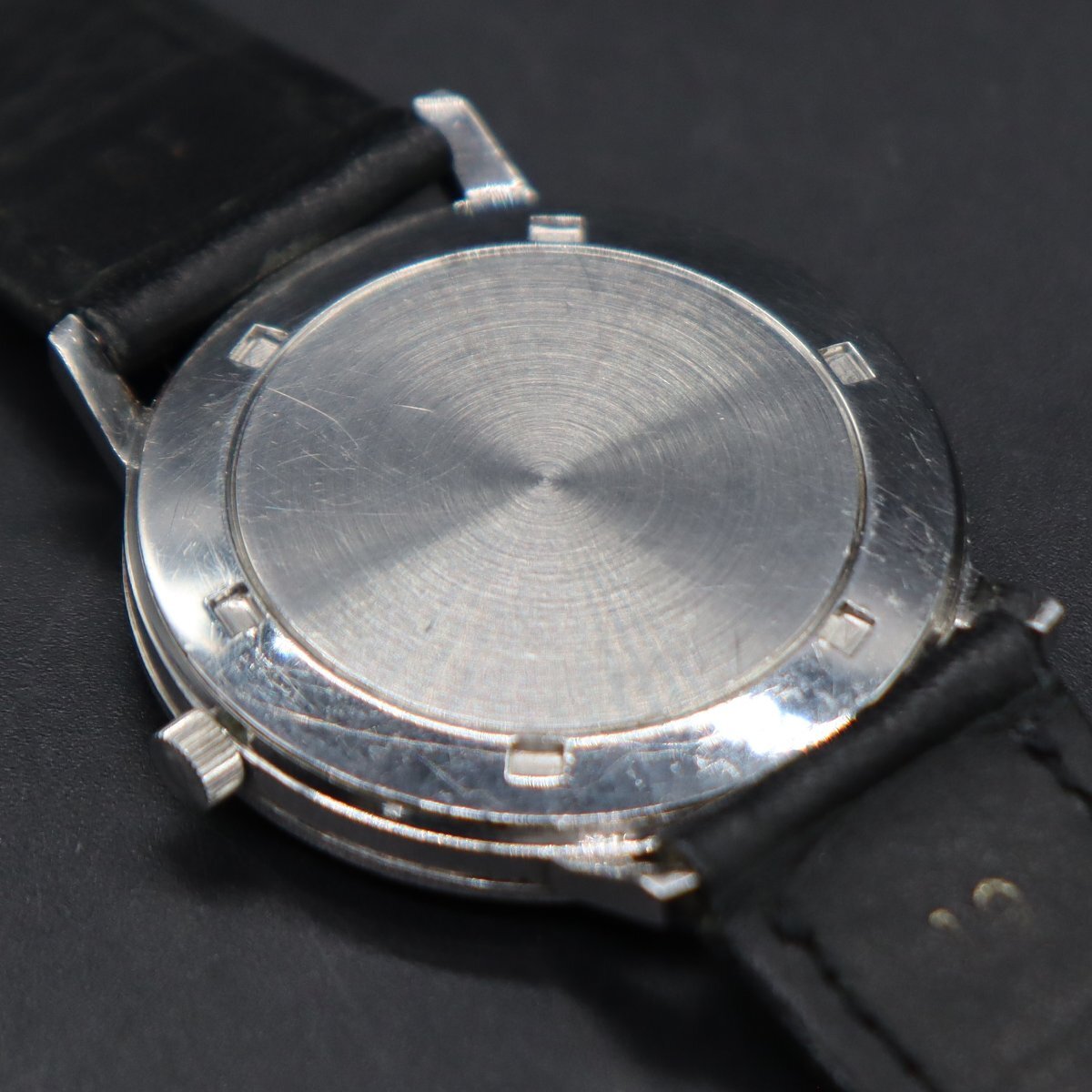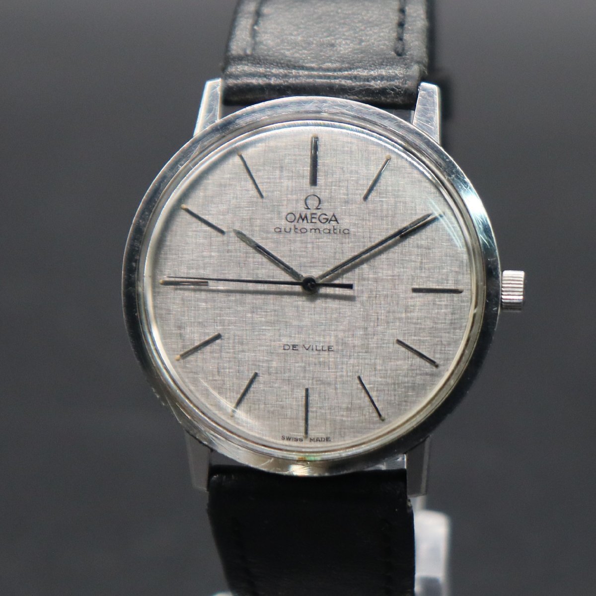 平置きで12時間動作確認済み、大幅な遅れなく稼働中です。 リューズ一段引きで時刻調整が可能です。 全体に経年のスレ・キズ・小打痕・小汚れ、 風防に小キズございますが、視認性は問題なく良好です。 針に小傷み、夜光に経年劣化見受けられますが、 インデックスは傷み少なく、文字盤は目視できれいです。 ロゴや印字に消えや擦れなく、経年の割りにきれいなダイアルです。 風防中央、透かしΩマークございます。 リューズ、Ωマーク付き純正品です。 ベルトは使用感ございますが、尾錠は傷み少なく良好です。 通常使用に問題ございません。 アンティークですので、詳しくは画像にてご判断願います。 |